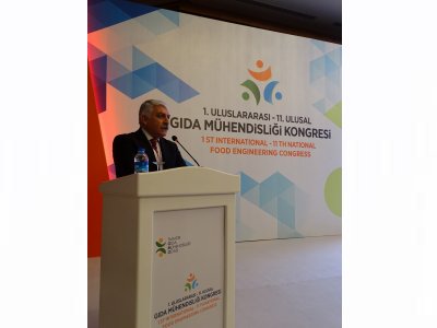 Başkanımız konuşmasında, "İnsanların sağlıklı ve güvenli gıda maddelerine erişiminin sağlanabilmesi için yerli üreticiyi destekleyen, üretim kalitesini artıran tarım ve gıda politikaları yaşama geçirilmelidir, gıda hilelerine ve kalitesiz üretime karşı önlemler artırılmalıdır. Kaliteli gıda maddelerinin üretimi için hammaddenin kalitesinin artırılması olmazsa olmaz koşuldur. Bunun için ülkemize özgü yerel tarım ürünleri ve bunlardan elde edilen gıda maddelerinin korunmasına yönelik çalışmalar yoğunlaştırılmalı, dışa bağımlılık azaltılmalı, yerel ürünlerimiz dünyada tanınır hale getirilmesi gereklidir" dedi. Başkanımız, içinde bulunduğumuz yüzyılda yeni teknolojilerin ve yeni araştırma konularının önünü açmanın bilimsel çalışmalarla mümkün olacağını, yeni teknolojilerle birlikte yeni gıdalar, yeni ambalajların da hızla hayatımıza katılacağını belirterek, Kongremizde; üretimden tüketime gıda zincirinin tüm aşamalarını içine alacak şekilde gıda işleme ve korumada yeni teknolojiler, biyoteknoloji, nanoteknoloji, sanayi devriminin dördüncü jenerasyonu olarak nitelendirilen Endüstri 4.0 gibi teknolojik ve bilimsel konuların ele alınarak, gıda sektörünün her yönüyle tartışmaya açılacağını aktararak, gıda ile ilgili gelişmelerin takip edilerek, sorunları konusunda uzman isimlerin değerlendirmelerini öğrenmek ve çözüm önerileri oluşturmak üzere Kongremize katılımcıların da aktif olarak katkılarını beklediklerini iletti.