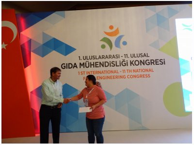 Kongre kapanışında yapılan, bütçesi Kuveyt Bilimsel Araştırma Enstitüsü`nden Dr. Jasim Ahmed tarafından oluşturulan poster yarışmasında jüri üyelerimiz tarafından iki poster ödüle layık bulundu. "The Effect of Microfluidization Process on Morphology of Legume Flours based Nanofibers Produced by Electrospinning Method" başlıklı posteri ile Seren Oğuz ve "Preparation and Characterisation of Chickpea Flour-based Biodegradable Films Reinforced with Rice Starch Nanoparticles" başlıklı posteri ile Kübra Ertan ödüle layık görüldü. Dereceye giren poster sahiplerine 200 $ ödül verildi.