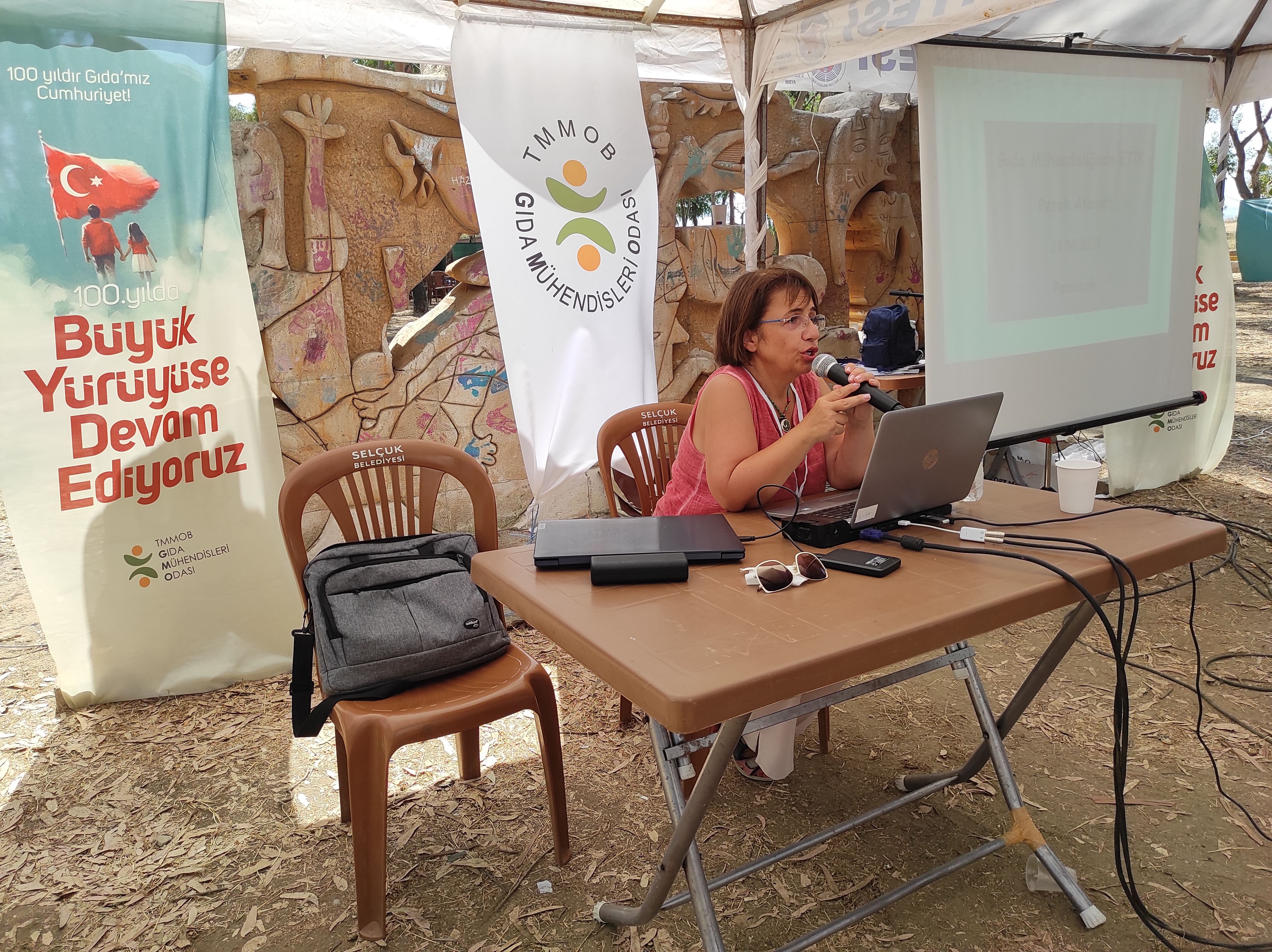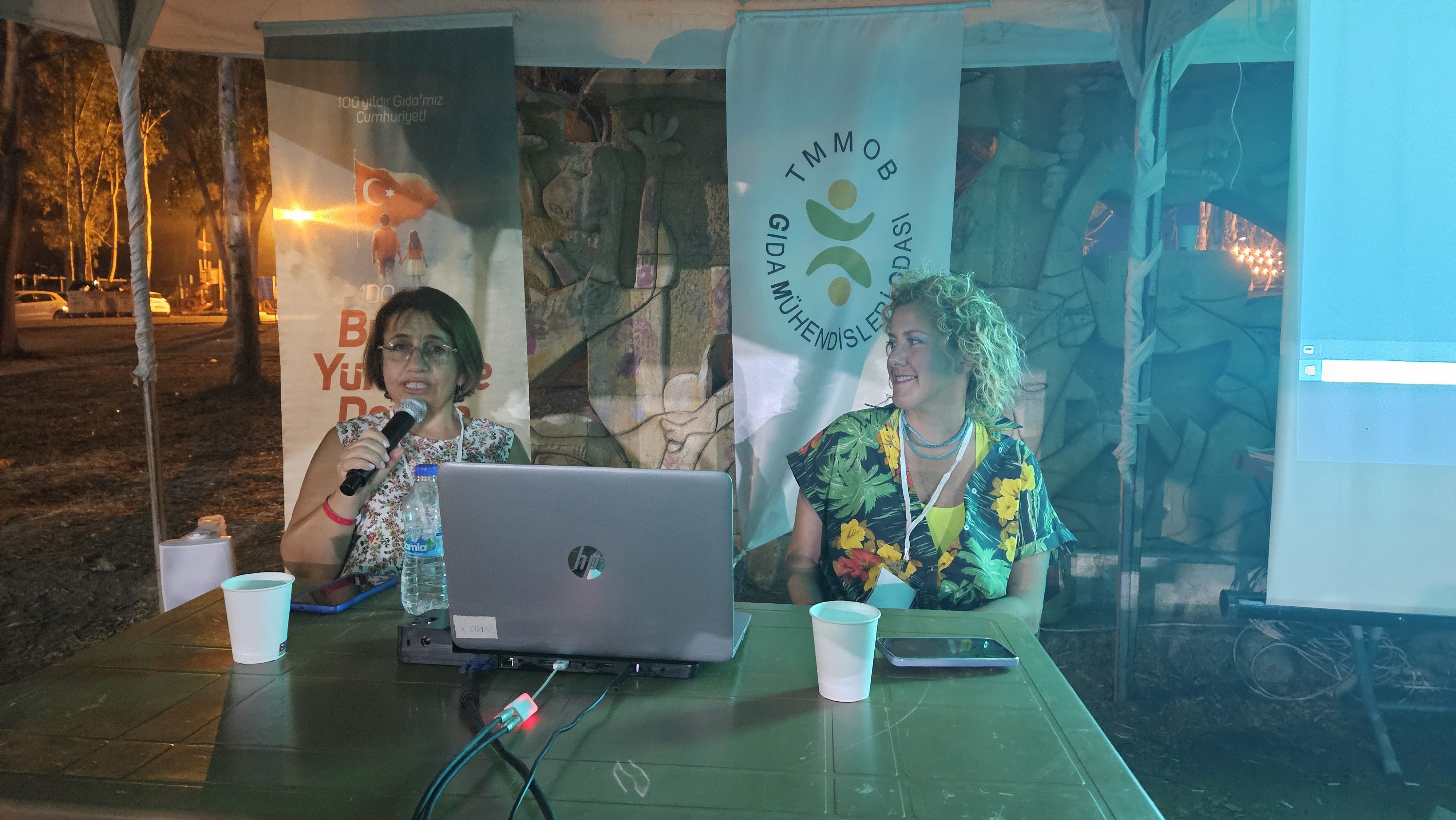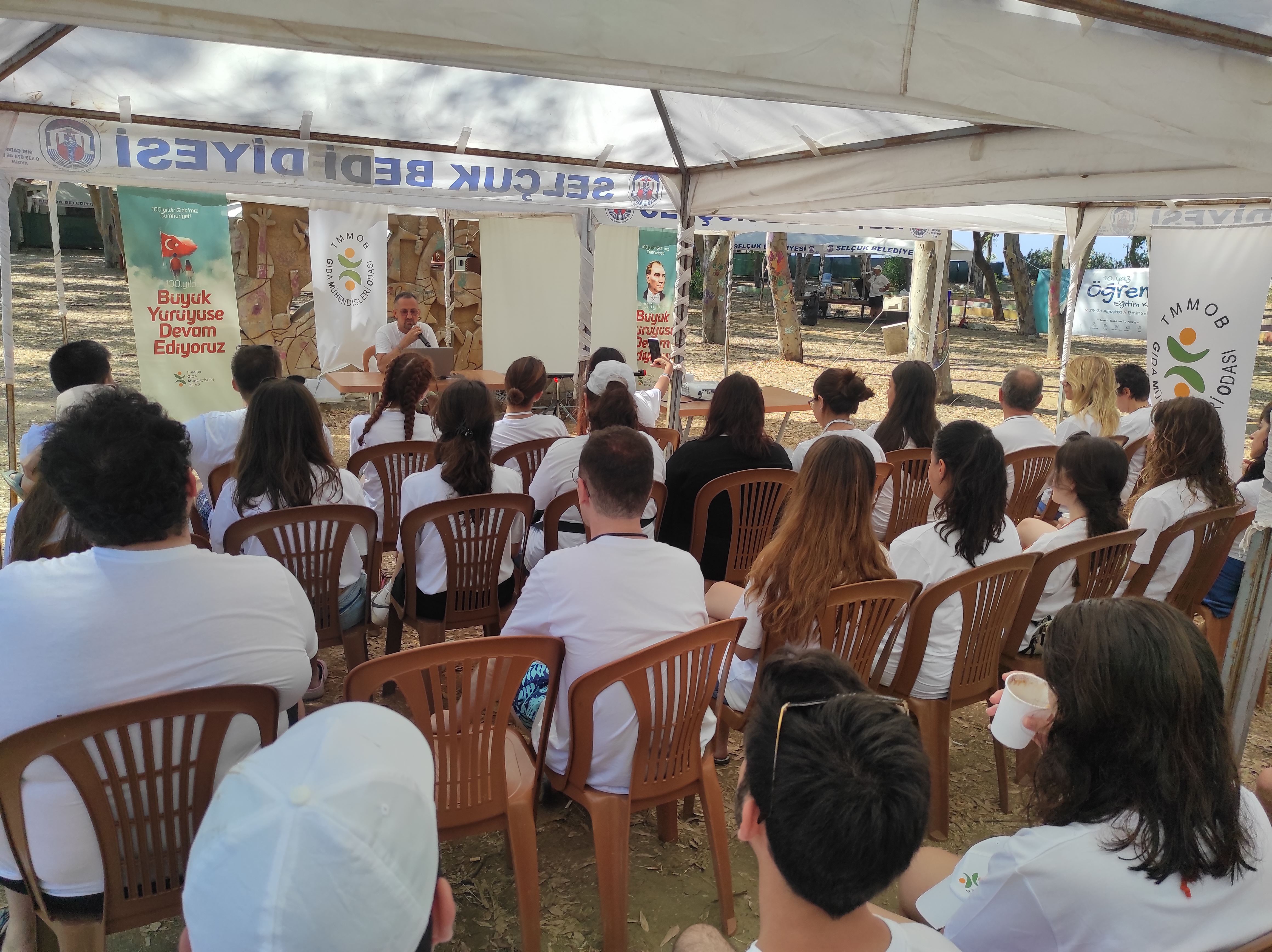 Odamız Yönetim Kurulu Başkanı Yaşar Üzümcü`nün açılış konuşması yaptığı Yaz Eğitim kampımız boyunca; Yönetim Kurulu Başkanımız Yaşar Üzümcü, Yönetim Kurulu Sayman Üyemiz Tufan Gündüzalp ve Yönetim Kuru Üyemiz Uğur Toprak "TMMOB, Gıda MO ve Meslek Örgütlülüğü", Öğrenci Koordinasyon Kurulu Üyemiz Gamze Atar Kayabaşı'nın "ÖKK Öğrenci Temsilciliği Çalışmaları ve Bilgilendirme", Yönetim Kurulu Üyemiz Uğur Toprak "Gıda ve Su Hakkı", İstanbul Şube Yönetim Kurulu Üyemiz Ebru Akdağ "Gıda Hurafeleri Örnekleri ve Gıda Mühendislerinin Yaklaşımı", Onur Kurulu Üyemiz Petek Ataman "Gıda Mühendisliğinde Etik", Prof. Dr. Ufuk Yücel "Şarap Kültürü ve Şarap Üretim Teknolojileri", İzmir Şube Eski Yönetim Kurulu Üyesi İnci Özer "Zeytin ve Zeytinyağı Kısa Anlatım ve Tadımı" konusunda öğrenci arkadaşlarımızı bilgilendirerek, söyleşiler gerçekleştirdiler.