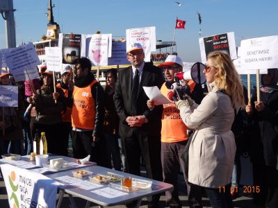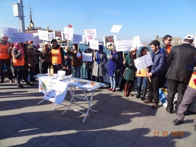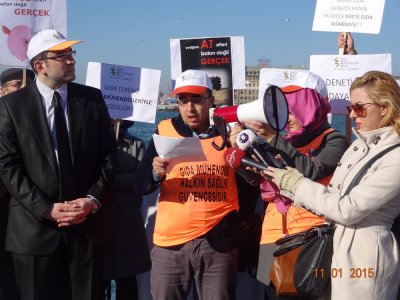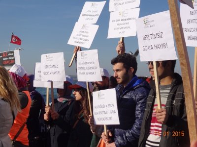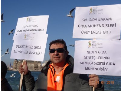 TMMOB Gıda Mühendisleri odası İstanbul Şubesi olarak, meslek haklarımızı savunmak ve halk sağlığı için gıda terörüne dur demek için; 11 Ocak 2015 Pazar günü Kadıköy`de toplandık. Basın açıklaması Yönetim Kurulu 2. Başkanımız Sayın İsa TAHTA tarafından okundu.