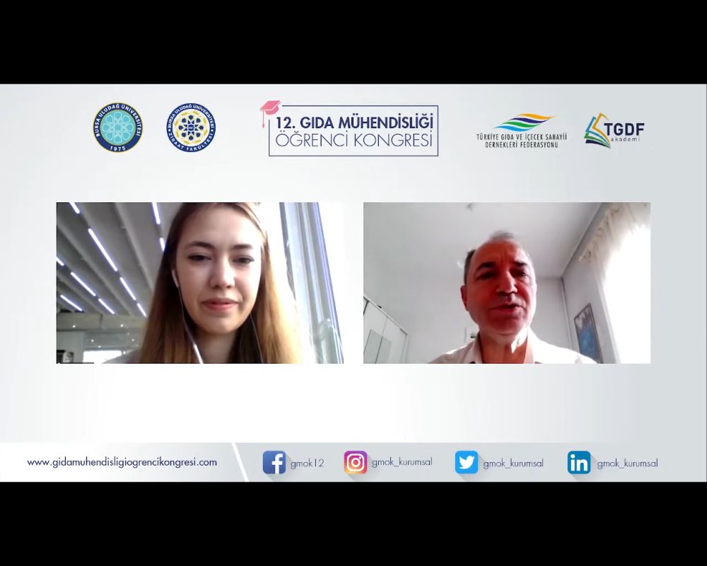 12. Gıda Mühendisliği Öğrenci Kongresi 21-22 Mart 2022 tarihleri arasında, Bursa Uludağ Üniversitesi ev sahipliğinde online olarak "Geleceği Yakala" ana temasıyla düzenlendi. Yönetim Kurulu Başkanımız Yaşar Üzümcü, gıda mühendisi adaylarını, yüksek lisans ve doktora öğrencilerini, akademisyenleri ve sektör temsilcilerini bir araya getiren kongrede bir açılış konuşması yaptı.