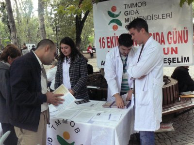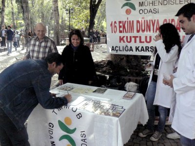 16 Ekim Dünya Gıda Günü etkinlikleri çerçevesinde TMMOB Gıda Mühendisleri Odası olarak Şubelerimiz, Temsilciliklerimiz ve Öğrenci Temsilciliklerimizle kısaca tüm örgütümüzle birlikte yurt çapında tüketicilerle buluştuk ve açılacak stantlarda halkımıza "Bilinçli Gıda Tüketimi" konusunda bilgilendirmelerde bulunduk. FAO‘nun başlattığı "1 Milyar Aç İnsan" imza kampanyasına destek sağladık.