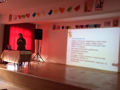Yönetim Kurulu Yazman Üyemiz Sayın Neslihan BÜLBÜL, yaklaşık 100 kadar öğrenciye 16 Ekim Dünya Gıda Günü ve Bilinçli Gıda Tüketimi (BGT) hakkında bilgilendirmelerde bulunmuştur.