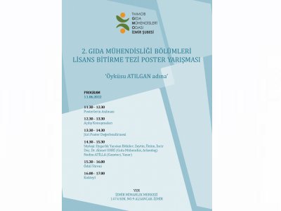 Aydın, İzmir ve Manisa`daki üniversitelerin Gıda Mühendisliği Bölümlerinden mezun olma aşamasındaki öğrencilerin bitirme tezlerinin değerlendirileceği, ödüllerimizi genç yaşta kaybettiğimiz meslektaşımız Öyküsu ATILGAN adına` vereceğimiz yarışmamıza bekliyoruz.