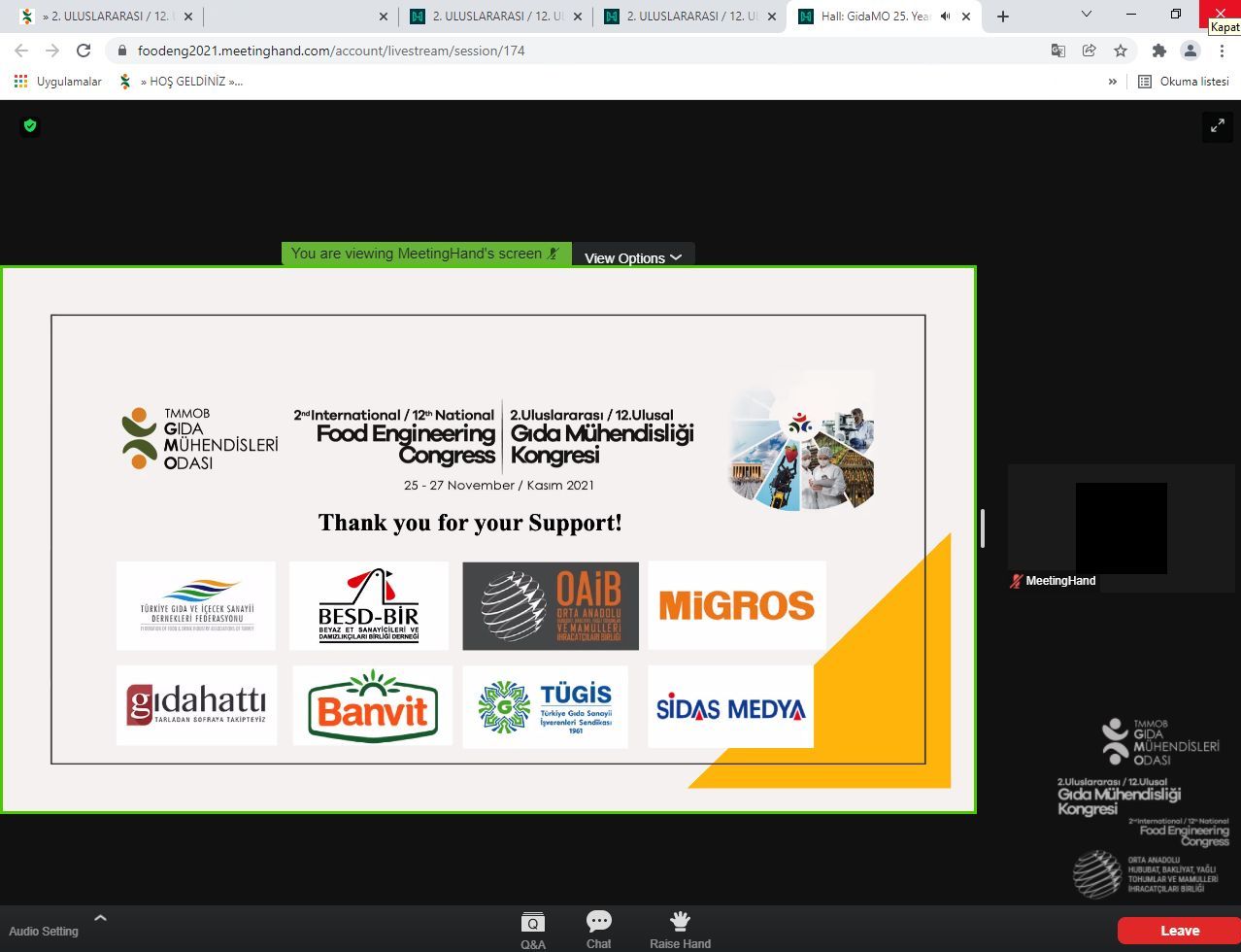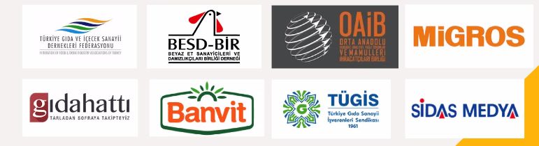 Kongremize destek veren sponsorlarımız; TGDF (Türkiye Gıda ve İçecek Sanayii Dernekleri Federasyonu), BESD-BİR (Beyaz Et Sanayicileri ve Damızlıkçıları Birliği Derneği), OAİB (Orta Anadolu Hububat, Bakliyat, Yağlı Tohumlar ve Mamulleri İhracatçıları Birliği), MİGROS, BANVİT ve TÜGİS (Türkiye Gıda Sanayi İşverenleri Sendikası) ile Kongremizin tanıtım ve haberlerine yayınlarında yer veren GıdaHattı, Sidas Medya ve Packworld Türkiye Dergisi`ne çok teşekkür ederiz.