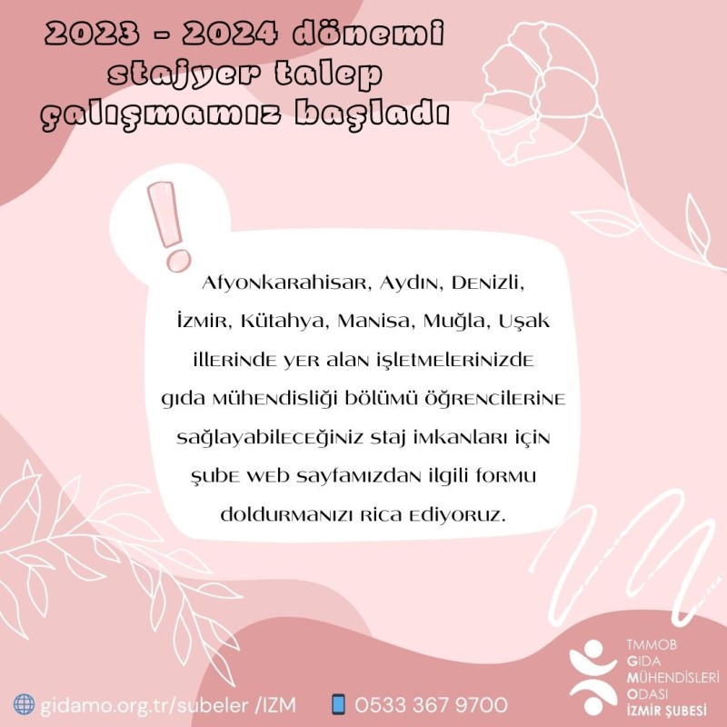 2023 - 2024 DÖNEMİ STAJYER TALEP ÇALIŞMAMIZ BAŞLADI