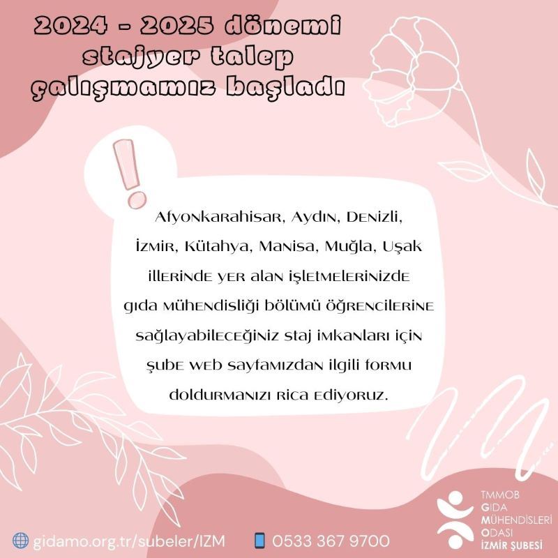 2024 - 2025 DÖNEMİ STAJYER TALEP ÇALIŞMAMIZ BAŞLADI