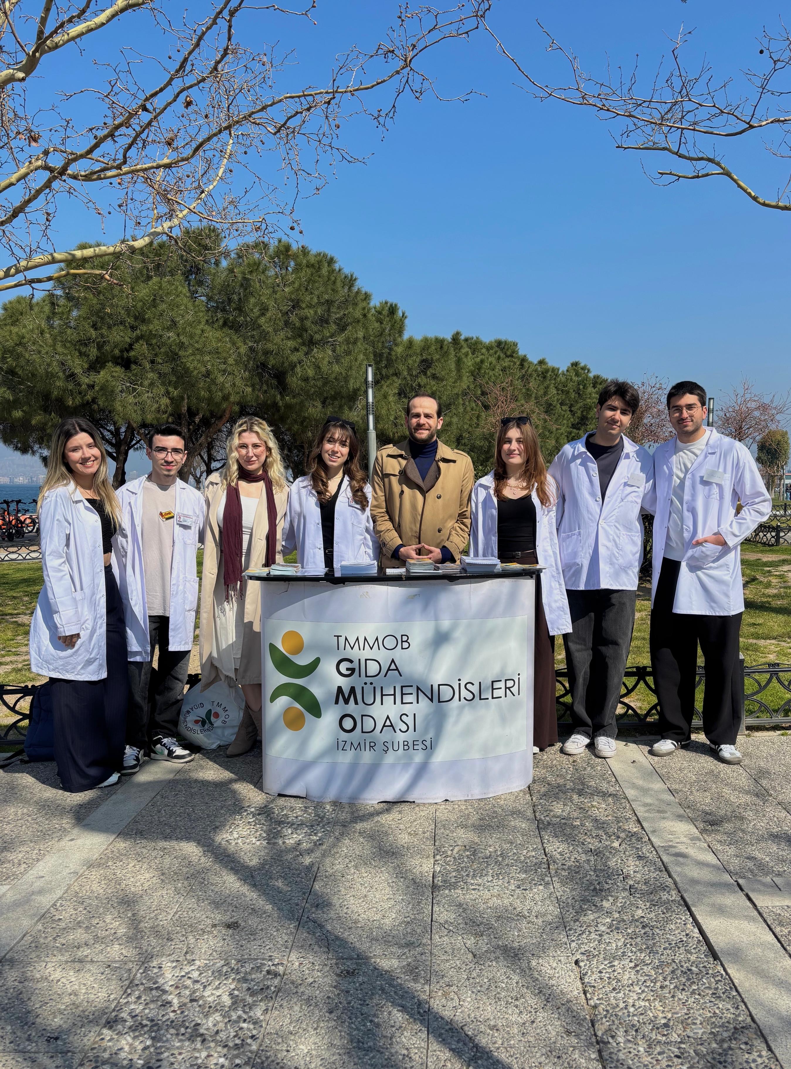 22 Mart Dünya Gıda Günü etkinliklerimiz kapsamında Odamız Ege Üniversitesi ve İzmir Yüksek Teknoloji Enstitüsü Öğrenci Temsilciliklerimize bağlı öğrenci üyelerimiz 14 Mart 2026 Cumartesi günü Konak'ta ve 22 Mart 2026 Pazar günü Urla'da açtıkları bilgilendirme standlarında; Dünya Su Gününü anlattılar, temiz, sağlıklı suya, sürekli erişimin önemini, suyun ticarileştirilmesine karşı mücadelemizi, Odamız ve Şubemizin çalışmaları konusunda bilgilendirmeler yaptılar, doğru bilinen yanlışları düzelttiler ve akıldaki soruları cevapladılar. Yönetim Kurulu olarak öğrencileri arkadaşlarımızla birlikte biz de meydanlardaydık.