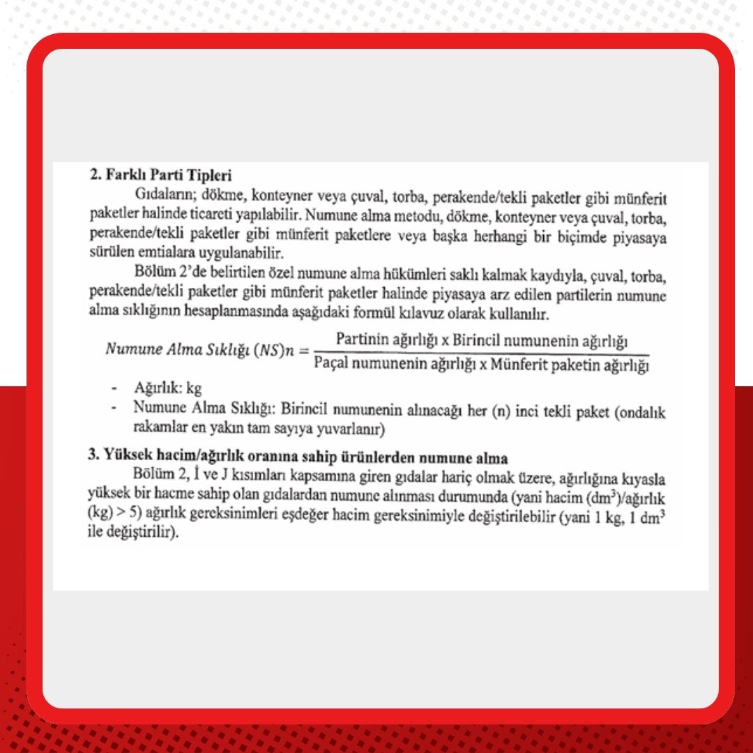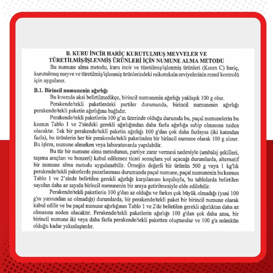 👉 Türk Gıda Kodeksi Gıdalardaki Mikotoksin Seviyelerinin Resmî Kontrolü İçin Numune Alma ve Analiz Metodu Kriterleri Tebliği (Tebliğ No: 2025/7)