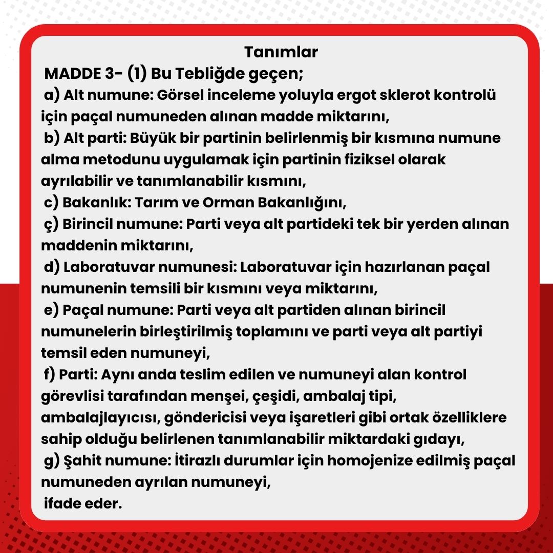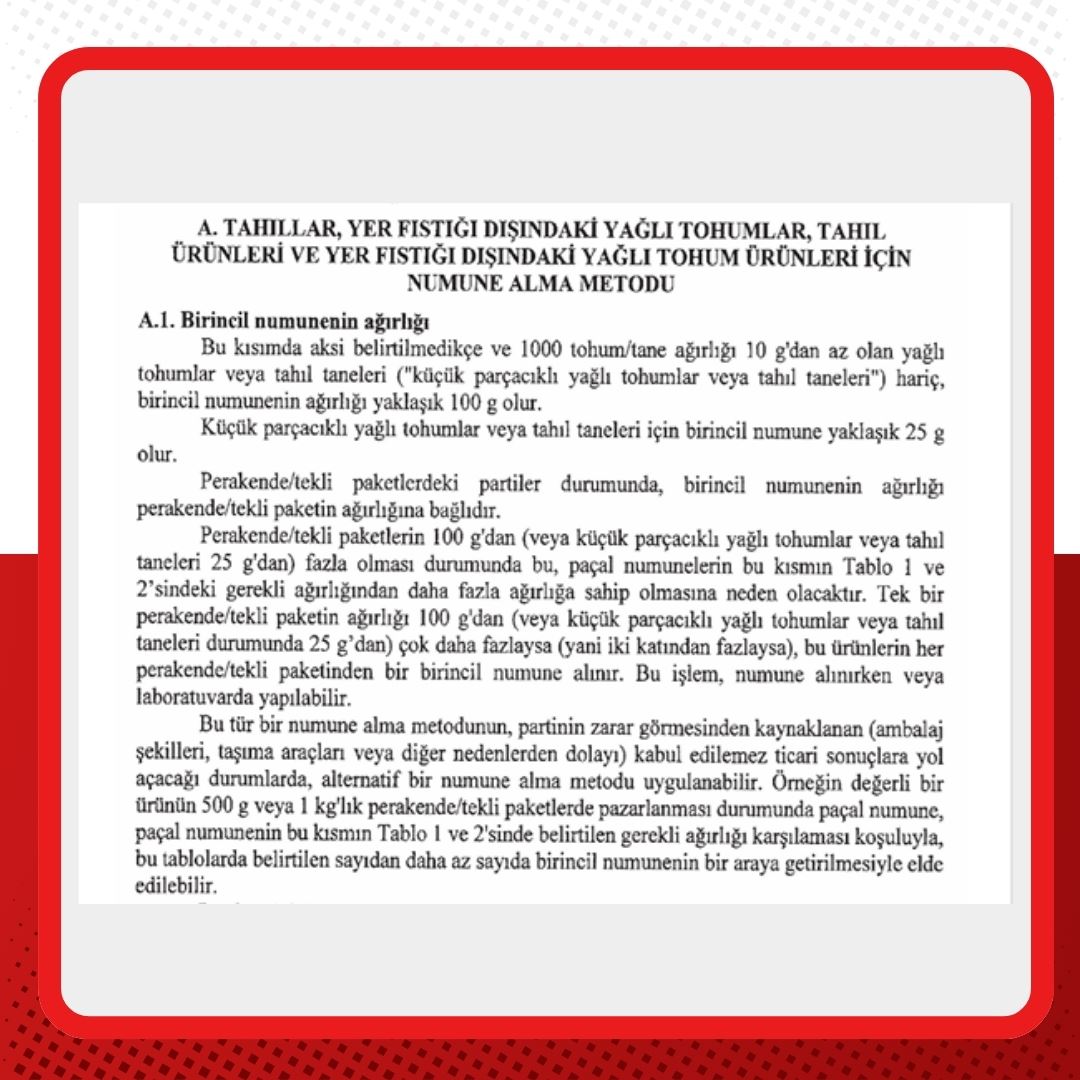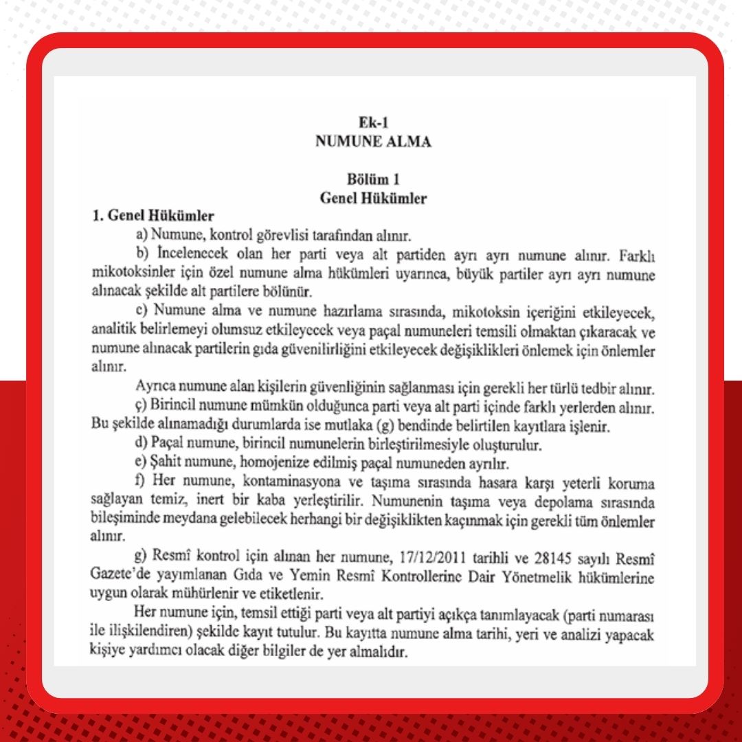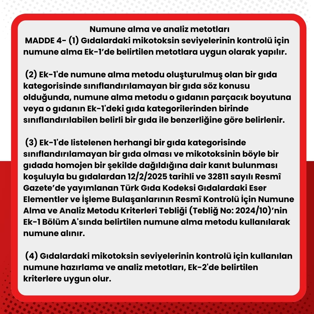 📢 26.03.2025 TARİH VE 32853 SAYILI RESMİ GAZETE / TÜRK GIDA KODEKSİ GIDALARDAKİ MİKOTOKSİN SEVİYELERİNİN RESMÎ KONTROLÜ İÇİN NUMUNE ALMA VE ANALİZ METODU KRİTERLERİ TEBLİĞİ (TEBLİĞ NO: 2025/7)