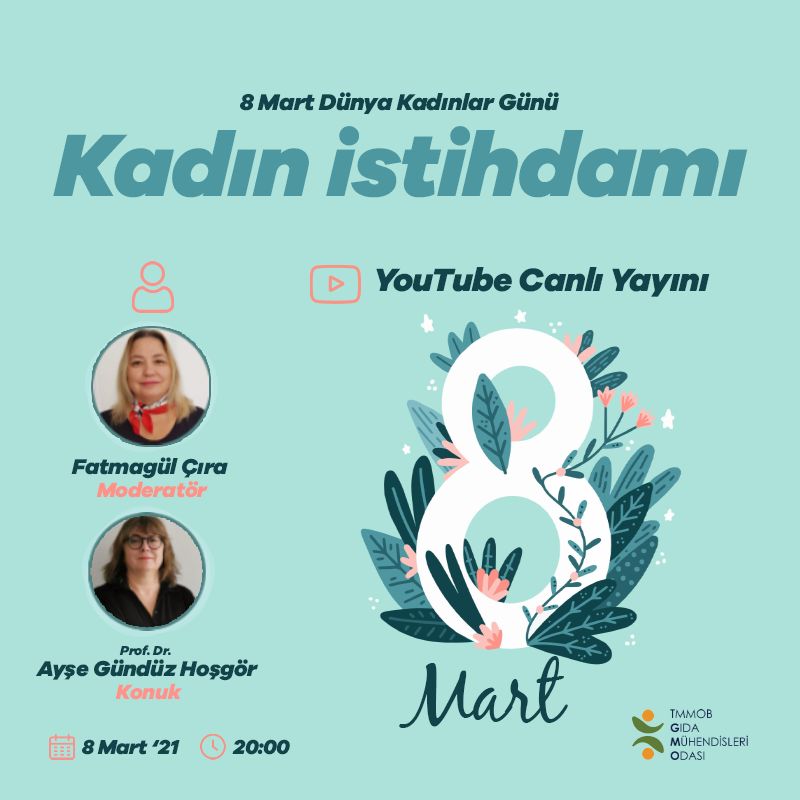 8 Mart Dünya Emekçi Kadınlar Günü kapsamında moderatörlüğünü Fatmagül Çıra‘nın yaptığı, ODTÜ Sosyoloji Bölümü Öğretim Üyesi Prof. Dr. Ayşe Gündüz Hoşgör‘ün konuk olarak katıldığı "Kadın İstihdamı" başlıklı söyleşimizi 8 Mart 2021 tarihinde online olarak gerçekleştirdik.
