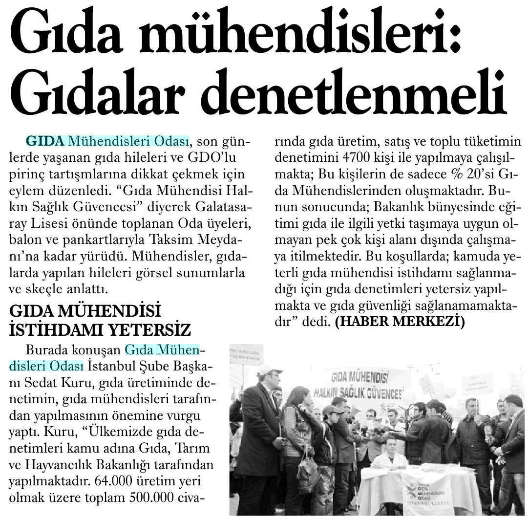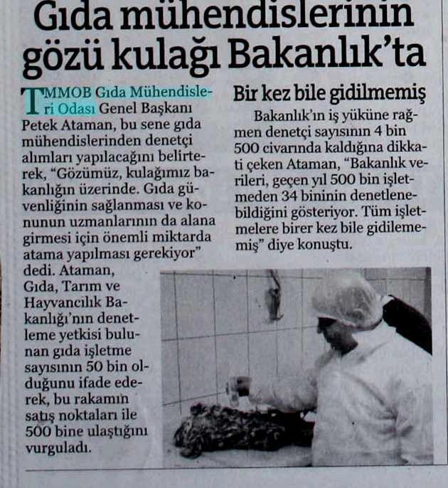 "GIDA MÜHENDİSLERİNİN İSTİHDAMI ARTIRILSIN" MEDYA 73