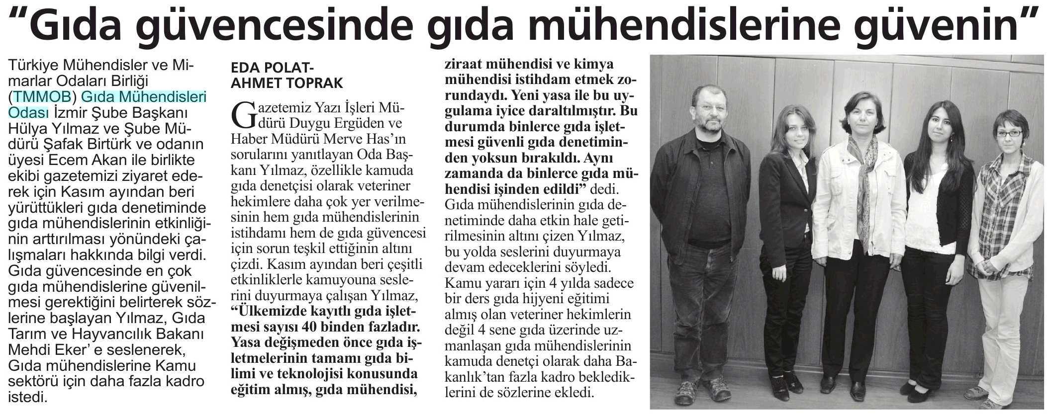 "GIDA GÜVENCESİNDE GIDA MÜHENDİSLERİNE GÜVENİN" - EGE‘DE BUGÜN