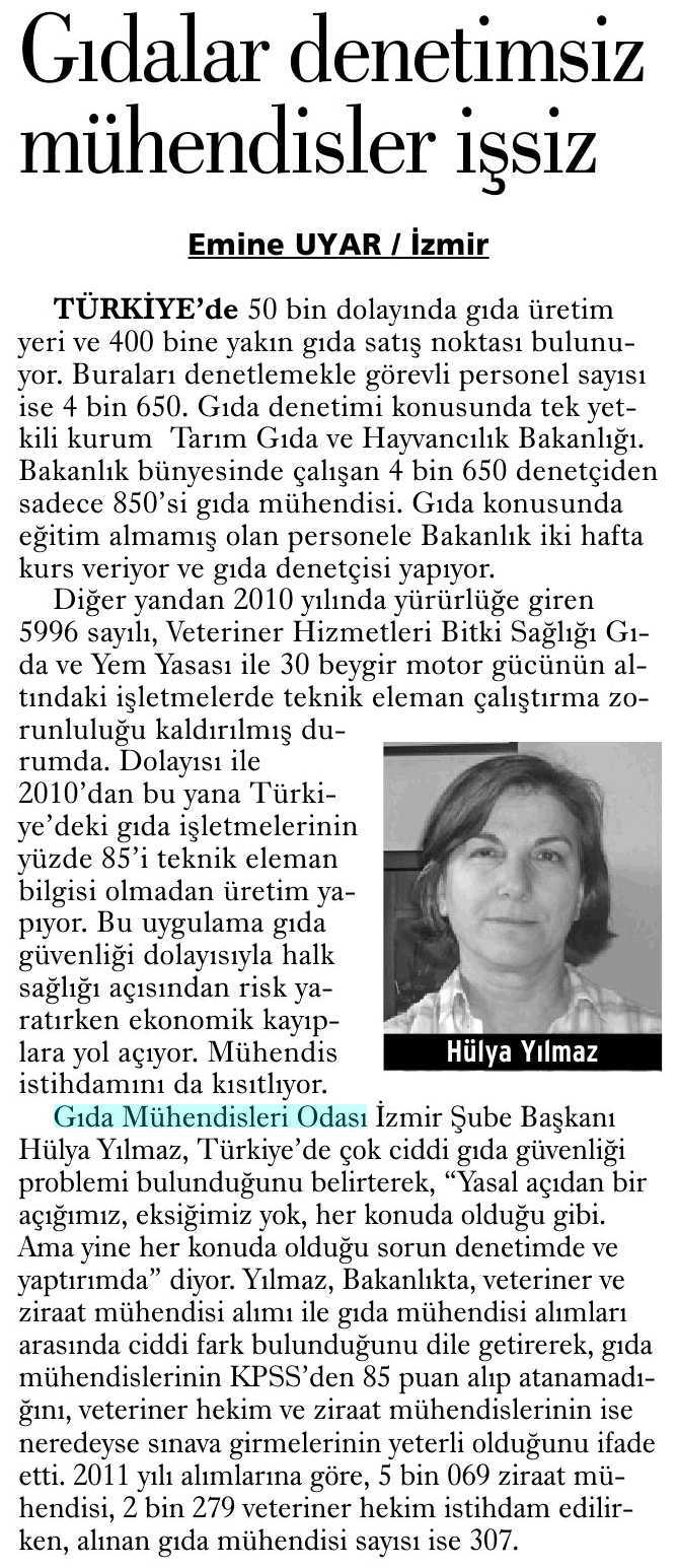 "GIDA MÜHENDİSLERİ RAHATSIZ" - HÜRRİYET EGE