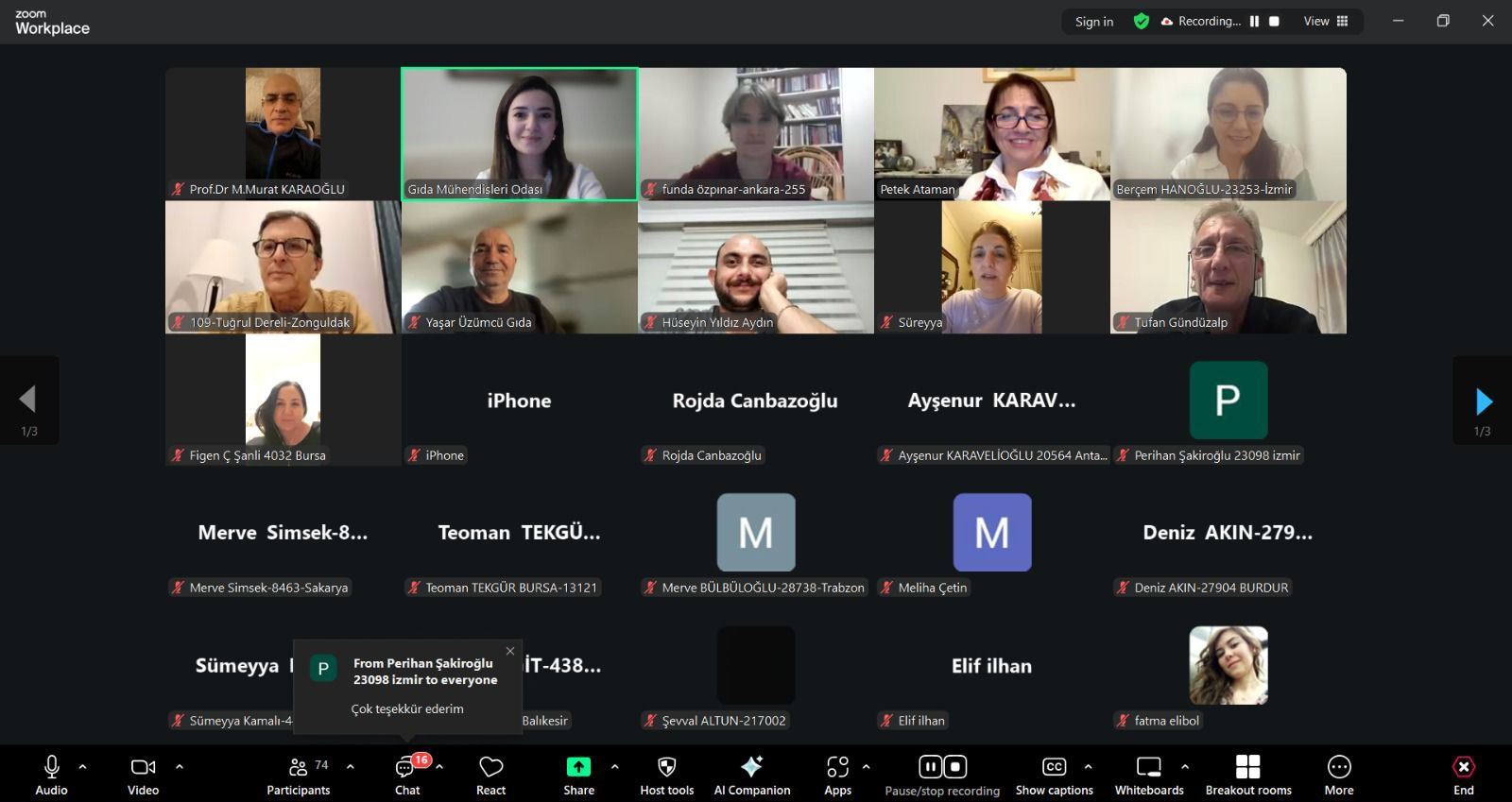 28 Ocak 2026 tarihinde, moderatörlüğünü Eğitim Komisyonu Üyemiz Berçem Hanoğlu'nun yaptığı, Odamız Onur Kurulu Üyesi Petek Ataman'ın sunumu ile Avrupa Birliği Gıda ve Yem için Hızlı Uyarı Sistemi (RASFF) Seminerini gerçekleştirdik.