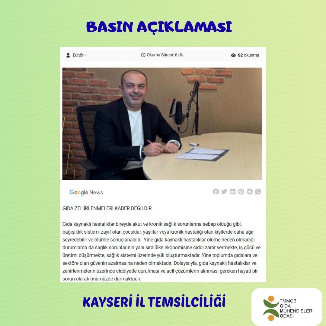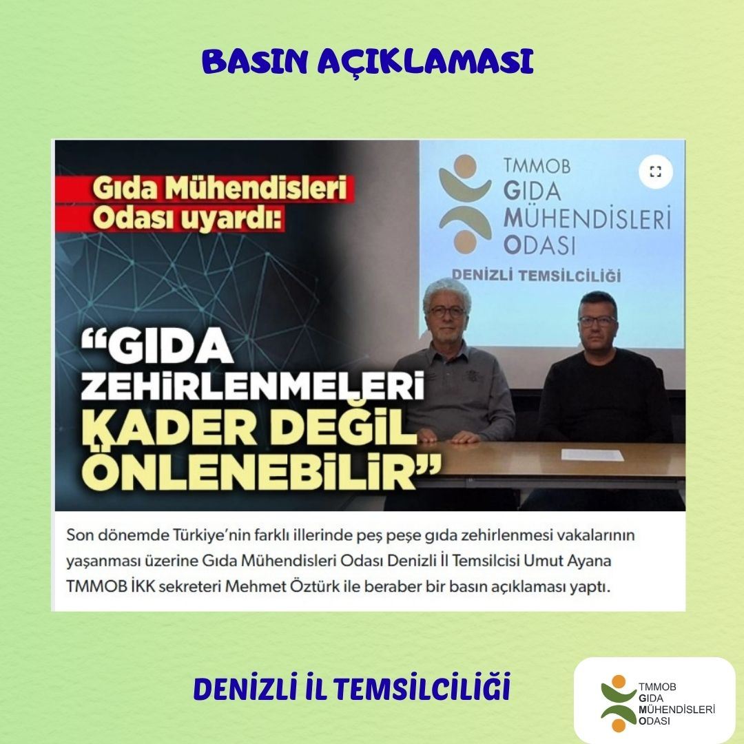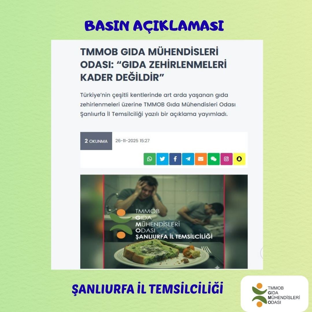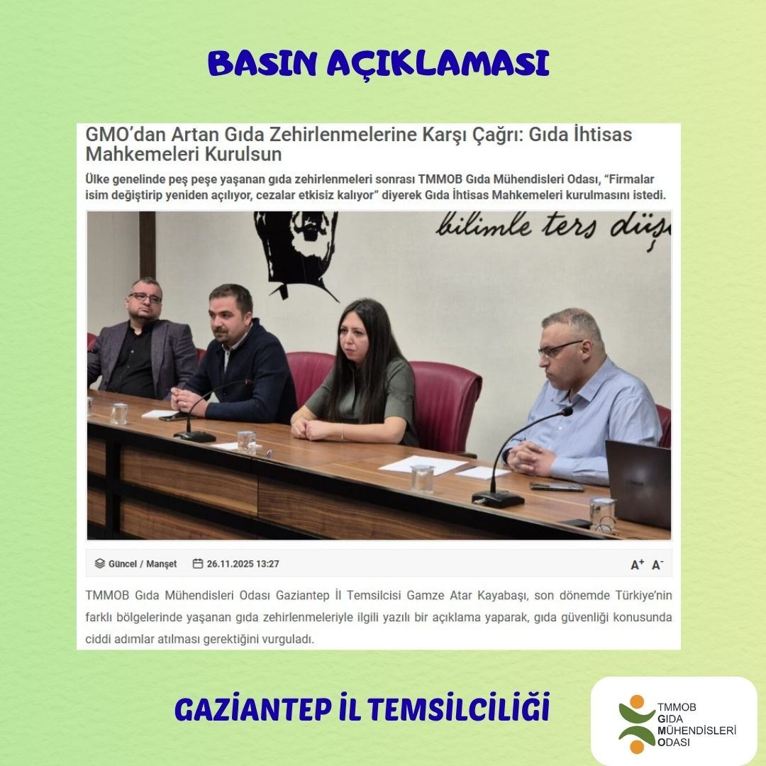 TMMOB Gıda Mühendisleri Odası olarak tekrar uyarıyoruz.