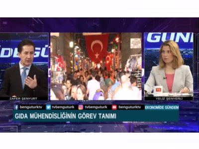 TMMOB Gıda Mühendisleri Odası İstanbul Şubesi Yönetim Kurulu Başkanımız Sn. Zafer ŞENYURT, 23 Ekim 2019 Çarşamba günü, Bengütürk TV‘de yayınlanan Ekonomide Gündem programında canlı yayın konuğu olmuştur. Yeliz ŞENYERLİ‘nin sunduğu programda gıda güvenliği, gıda politikaları, gıda egemenliği, gıda hileleri, bilgi kirliliği, mesleğimizin önemini ve istihdam konularında bilgilendirmelerde bulunmuştur.