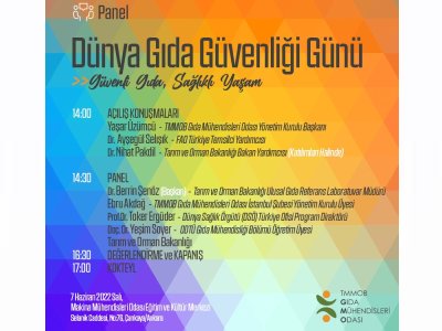 Bu kapsamda TMMOB Gıda Mühendisleri Odası olarak, güvenli gıdaya erişimin temel bir insan hakkı olduğu gerçeğinden hareketle; gıda güvenliğini artırmak yönünde farkındalık oluşturmak, risklerin tespit edilip önlenmesi ve doğru yönetilmesine olan ihtiyacı hatırlatmak, çözüm önerileri sunmak ve Gıda Mühendisliği mesleğinin önemini kamuoyuna daha iyi anlatmak üzere 7 Haziran 2022 tarihinde Ankara`da "Güvenli Gıda, Sağlıklı Yaşam Paneli" gerçekleştirdik.