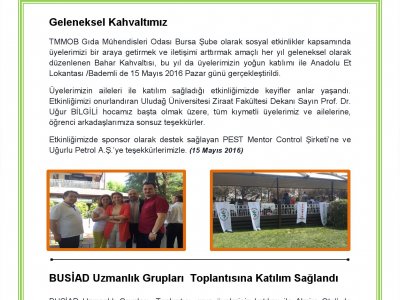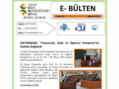 TMMOB Gıda Mühendisleri Odası Bursa Şubesi, E-Bülten Mayıs 2016 sayısı ekte yer almaktadır.
