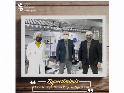 TMMOB Gıda Mühendisleri Odası İstanbul Şubesi olarak Yönetim Kurulu Başkanımız Sayın İsa TAHTA 22 Ekim 2020 Perşembe günü FA Grup Genel Koordinatörü Tuncay BAYCAN ve FA Grup Fatih Sultan Mehmet Yurdu Yemek hizmetleri projesinde görev yapan meslektaşımız Kevser Çam`ı ziyaret ettik.