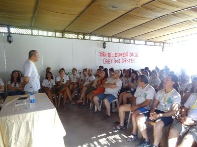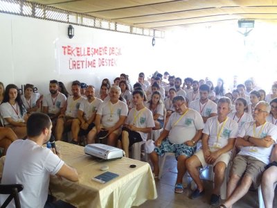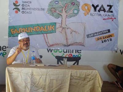 TMMOB Yönetim Kurulu Başkanı Emin KORAMAZ`ın da katılarak öğrencilerimizle bir söyleşi yaptığı Yaz Eğitim kampımız boyunca; Prof. Dr. Hamit KÖKSEL "Ekmeğin Tarihi", Av. Fatih Deniz ALAEDDİNOĞLU "Mesleki Haklarımız", Kemal Zeki TAYDAŞ "TMMOB Gıda Mühendisleri Odası ve Meslek Örgütlülüğü, Öğrenci Çalışması", Doç. Dr. Melda YAMAN ÖZTÜRK "Toplumsal Cinsiyet ve Kadın Emeği", Prof. Dr. Halil VURAL "Bilgi Kirliliği ve Mesleki Sorumluluğumuz", Prof. Dr. Yavuz TEKELİOĞLU "Coğrafi İşaretleme", Serdal BAHÇE "Çalışma Hayatı ve Emek", Barış İNCE "Basın ve Edebiyat Sorumluluğunda Toplumsal Duyarlılık", Dr. Bülent ŞIK "Gıda Tekelleşmesi", Prof. Dr. Aziz KONUKMAN "Türkiye‘deki Güncel Ekonomik Durum", TMMOB Gıda Mühendisleri Odası Eğe Üniversitesi Öğrenci Temsilciliği "Öğrenci Temsilciliği Eğitimi, Bilgilendirmesi, Bilinçli Gıda Tüketimi Sunumu ve Toplumcu Mühendislik, Mimarlık ve Şehir Plancılığı Haftası" konusunda öğrenci arkadaşlarımızı bilgilendirerek, söyleşiler gerçekleştirdiler.