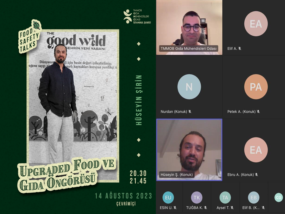 TMMOB Gıda Mühendisleri Odası İstanbul Şube olarak, 14 Ağustos 2023 tarihinde moderatörlüğünü Gıda Güvenliği Komisyon Başkanımız Sn. Mete Yolaş`ın yaptığı Food Safety Talks kapsamında Gıda Üretim Danışmanı ve Üyemiz Sn.Hüseyin Şirin'le Upgraded Food kavramını ve gıda öngörülerini konuştuğumuz söyleşimizi Microsoft Teams uygulaması üzerinde çevrimiçi olarak gerçekleştirdik.