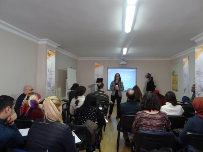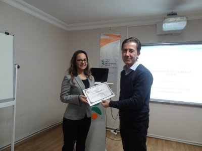 İstanbul Şube Yönetim Kurulu Başkanımız Sn. Zafer ŞENYURT, seminerin eğitmenliğini üstlenen Sn. Ayşegül KARADENİZ GÜÇLÜER‘e şubemize ve üyelerimize katkılarından dolayı teşekkür belgesi takdim etmiştir.