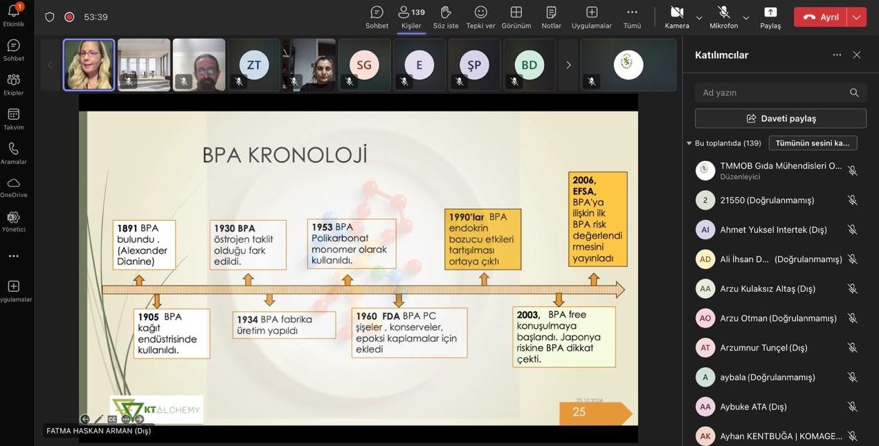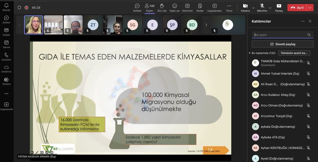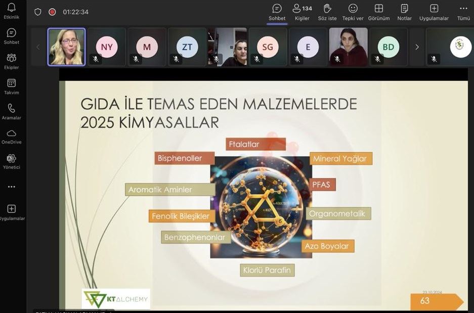 Gıda ile temas eden malzemelerde gıda güvenliğini sağlamak üzere çalışan, kalite, ürün güvenliğine önem veren kişilerin kimyasalların riskleri ve 2025 yılı için özellikle dikkat etmesi gereken kimyasallar üzerine konuşuldu. Sonrasında katılımcıların soruları yanıtlandı.