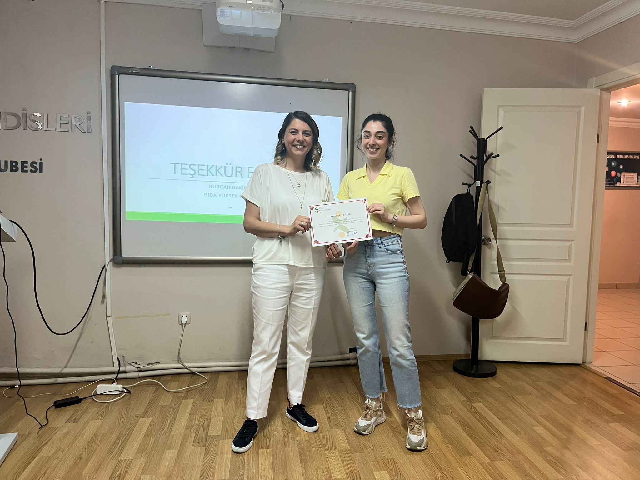 İstanbul Şube Yönetim Kurulu Üyemiz Hanzey KILINÇ Seminerin Eğitmenliğini üstlenen Sn. Nurcan BAKIR ÖZATA’ya şubemize ve üyelerimize katkılarından dolayı teşekkür belgesi takdim etmiştir.