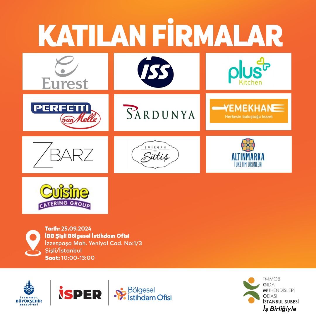 TMMOB Gıda Mühendisleri Odası İstanbul Şubesi olarak, üyelerimizin istihdamına katkı sağlamak amacıyla, İstanbul Büyükşehir Belediyesi (İBB) Bölgesel İstihdam Ofisi işbirliğiyle, 25 Eylül 2024 tarihinde İBB Şişli Bölgesel İstihdam ofisinde “Gıda Mühendisleri İş Fırsatları Buluşması” temalı mülakat etkinliğini gerçekleştirdik.