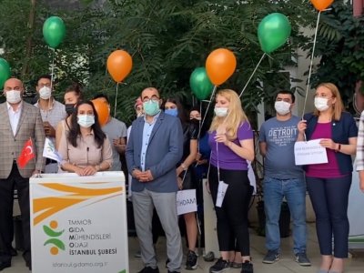 TMMOB Gıda Mühendisleri Odası İstanbul Şube`de 07 Temmuz 2021 Çarşamba günü saat 19.30` da meslektaşlarımız ve sektör paydaşları ile buluşup "Gıda Güvenliği için Gıda Mühendisi" diyerek halk sağlığı, meslek hakları ve istihdam farkındalığı oluşturmak için dilek balonlarımızı uçurduk.