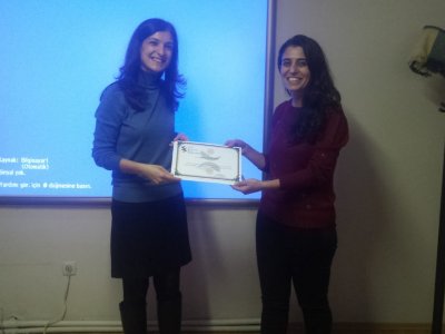 İstanbul Şube Yönetim Kurulu Sayman Üyemiz Sn. Sema Altay BAHÇECİ, seminerin eğitmenliğini üstlenen Sn. ÖZDEMİR‘e şubemize ve üyelerimize katkılarından dolayı teşekkür belgesi takdim etmiştir.