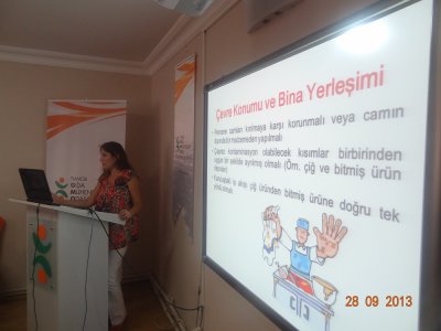 Gıda Mühendisleri Odası İstanbul Şubesi Mecidiyeköy Hizmet Binamızda 28 Eylül 2013 tarihinde Gıda Mühendisleri Odası İstanbul Şube 2. Başkanı Sayın Serpil BAŞTAŞ ÖZ‘ün eğitmenliğini yaptığı GMP ve GMP DENETİMLERİ seminerine üyelerimizin ilgisi büyük oldu. 70 kişilik katılımla gerçekleştirdiğimiz seminerimize üyelerimizin talepleri doğrultusunda katılım belgesi de verildi.