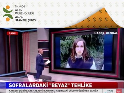 TMMOB Gıda Mühendisleri Odası İstanbul Şubesi Uzman Kurulu Üyemiz Sayın Özlem Erdoğan Çelik` in "Titanyum dioksitin içeriği ve yasaklanma nedenleri" hakkında bilgilendirmede bulunduğu röportajı 28.05.2021 tarihinde Haber Global Ana Haber Bülteninde canlı olarak yayınlanmıştır.
