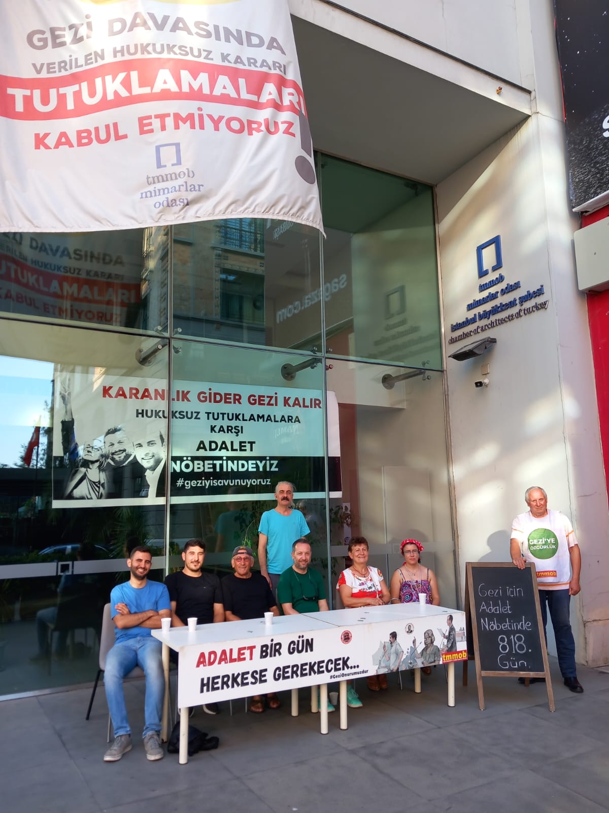 Gezi tutsaklarına adalet, onurumuz ve geleceğimiz için; TMMOB GıdaMO İstanbul Şubesi olarak İstanbul Adalet Nöbetinin 818 Gününde, 21 Temmuz 2024 tarihinde Mimarlar Odası İstanbul Büyükkent Şubesi‘nde #AdaletNöbeti‘ndeydik.