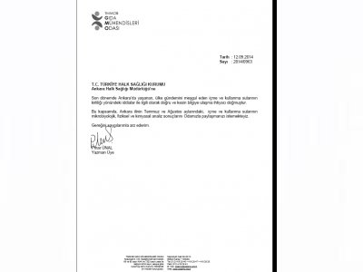 İÇME VE KULLANMA SULARI İLE İLGİLİ OLARAK SAĞLIK BAKANLIĞI TÜRKİYE HALK SAĞLIĞI KURUMU İLE YAPTIĞIMIZ YAZIŞMA