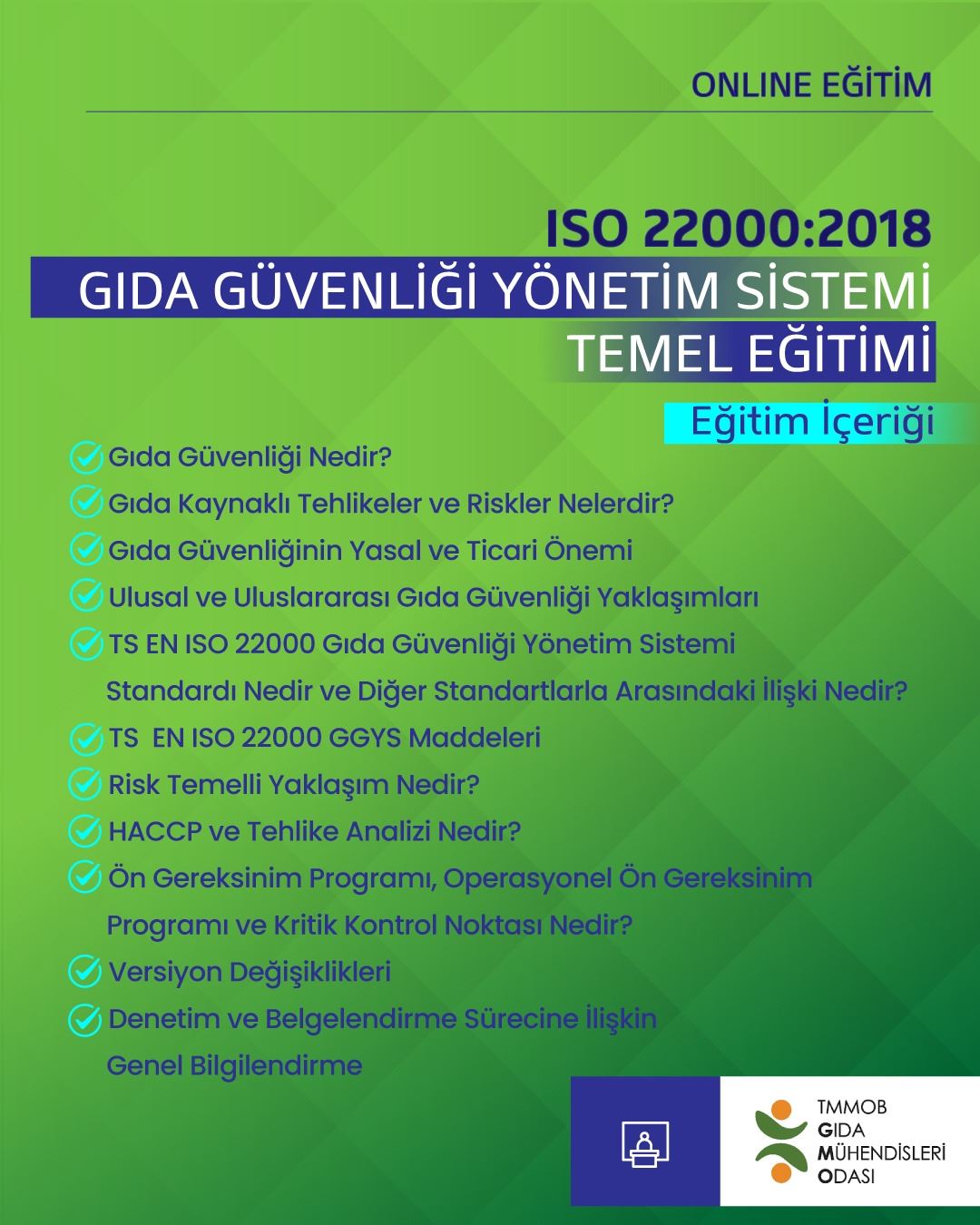 ISO 22000:2018 Gıda Güvenliği Yönetim Sistemi Temel Eğitimi