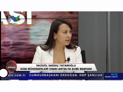TMMOB Gıda Mühendisleri Odası Antalya Şube Başkanı Sayın İncigül SAĞDIÇ TATAROĞLU Kanal V‘de yayınlanan ‘Perde Arkası‘ programında Taklit ve Tağşiş Yapan Firmaları değerlendirdi.