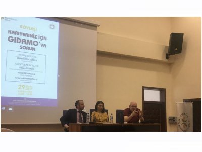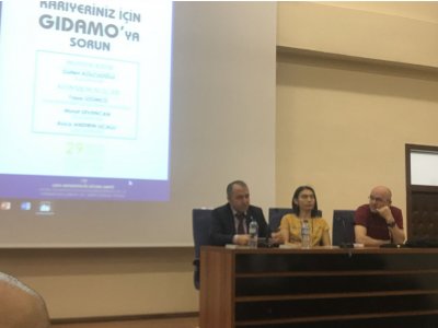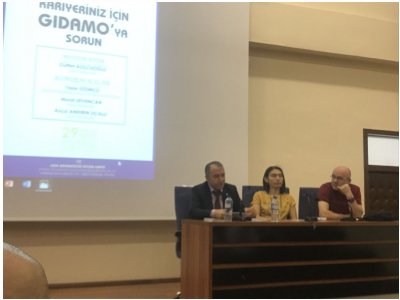 "Kariyeriniz için GıdaMO‘ya Sorun" söyleşimizi 29 Mayıs 2019 tarihinde Ankara Üniversitesi Gıda Mühendisliği Bölümü‘nde gerçekleştirdik. Moderatörlüğünü Odamızın Eğitim Komisyonu üyesi Gülten KOLCUOĞLU‘nun yaptığı söyleşide, Yönetim Kurulu Üyemiz Yaşar Üzümcü, Eğitim Komisyonu Üyeleri Ayça Andırın Uçallı ve Murat Sevencan konuşmacı olarak yer aldılar ve bilgi birikimi ve tecrübelerini gıda mühendisliği bölümü öğrencileri ile paylaştılar. Ankara Üniversitesi Gıda Mühendisliği Bölüm Başkanı ve Akademisyenlerinin de katıldığı söyleşi verimli bir şekilde tamamlandı.