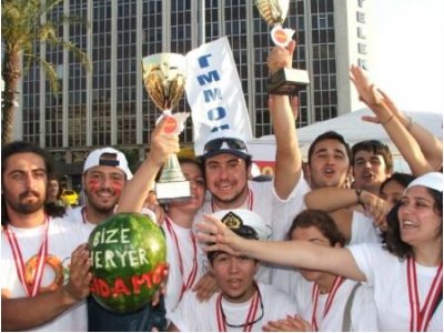 TMMOB bağlı 17 Odanın katıldığı yarışmada karton ve bant dışında hiçbir malzeme kullanılmadan yapılan tekneler yarıştı. Ekiplerin kendi tasarladıkları ve 3 saat içinde bitirdikleri tekneler Pasaport İskelesi önünden denize indirildi. Tekne kaptanlarının teknelerini su üzerinde zorlukla tuttuğu yarışmada ekibimiz, yarışmayı açık ara önde bitirmeyi başardı. İkinciliği Gemi Mühendisleri Odasının, üçüncülüğü ise Elektrik Mühendisleri Odasının kazandığı yarışmada ayrıca en iyi tasarım ödülünü yine Şubemiz alırken, ilk batan tekneye verilen Titanik Ödülünü Jeofizik Mühendisleri Odası, en iyi kostüm ödülünü Harita ve Kadastro Mühendisleri Odası, centilmenlik ödülünü ise geçen yıl kaybettiğimiz İnşaat Mühendisleri Odası İzmir Şube Başkanı Tahsin VERGİN‘in şahsında İnşaat Mühendisleri Odası aldı.