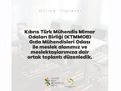 11 Ocak 2021 tarihinde Odamız Genel Merkez Yönetim Kurulu Üyeleri ile Kıbrıs Türk Mimar ve Mühendis Odaları Birliği Gıda Mühendisleri Odası Yönetim Kurulu üyeleri arasında online bir tanışma toplantısı gerçekleştirildi. Toplantıda, Oda‘ların yapısı, gerçekleştirilen faaliyetler, uygulamada olan gıda ile ilgili mevzuat, denetim mekanizmaları ve iki Oda arasında yapılabilecek işbirlikleri konuşuldu, karşılıklı fikir alışverişinde bulunuldu.