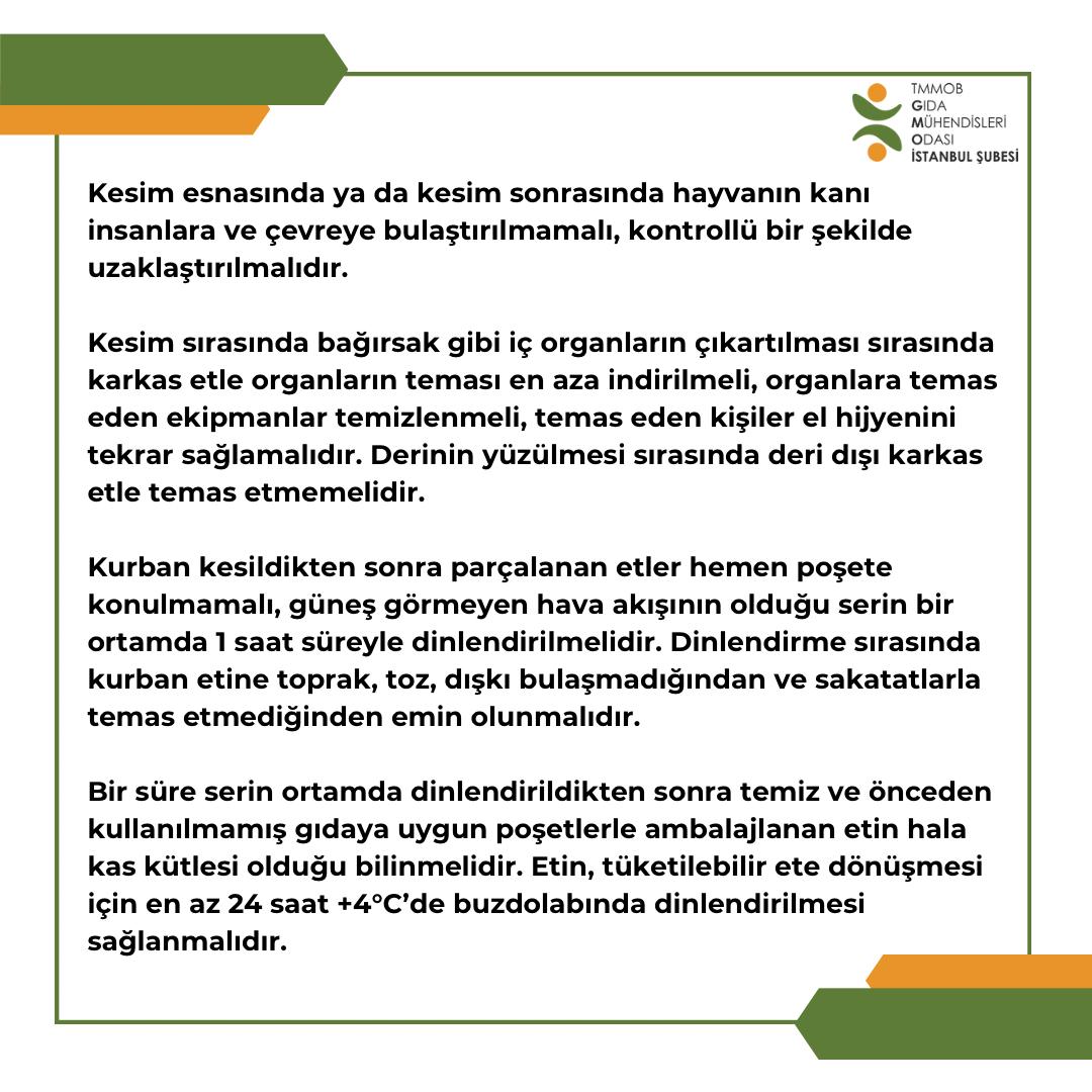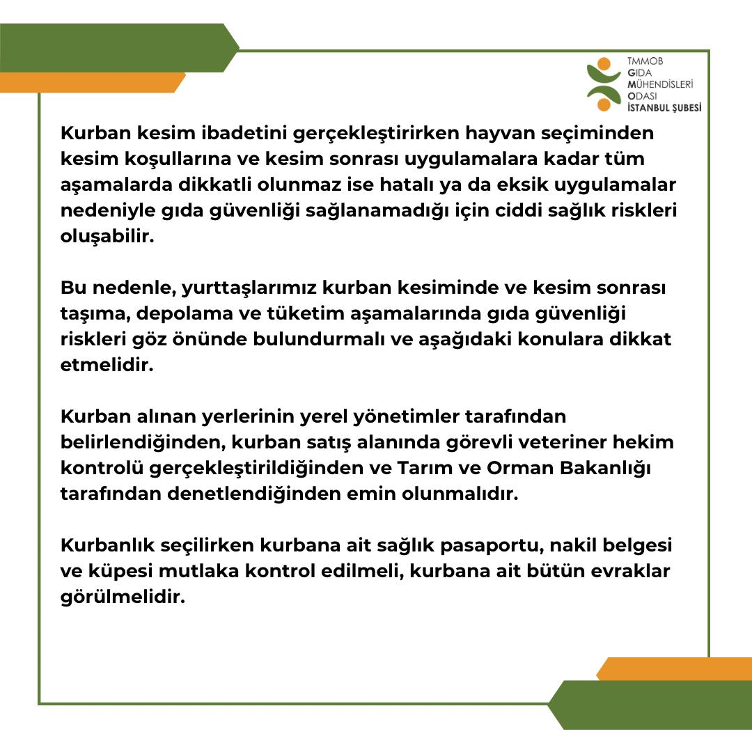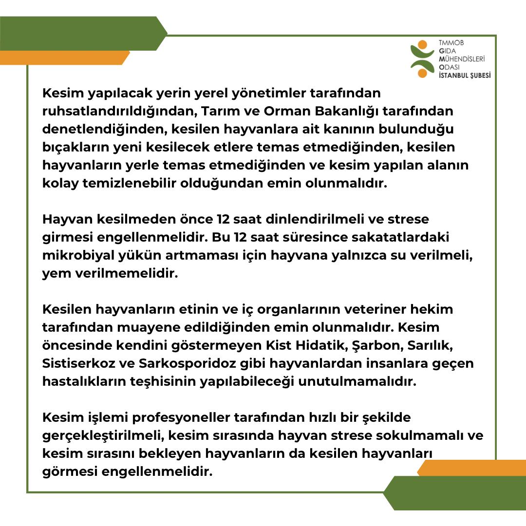 Bu nedenle, kurban kesiminde ve kesim sonrası taşıma, depolama ve tüketim aşamalarında gıda güvenliği riskleri göz önünde bulundurulmalı ve yurttaşlarımız bu aşağıdaki konulara noktalara dikkat etmelidir.