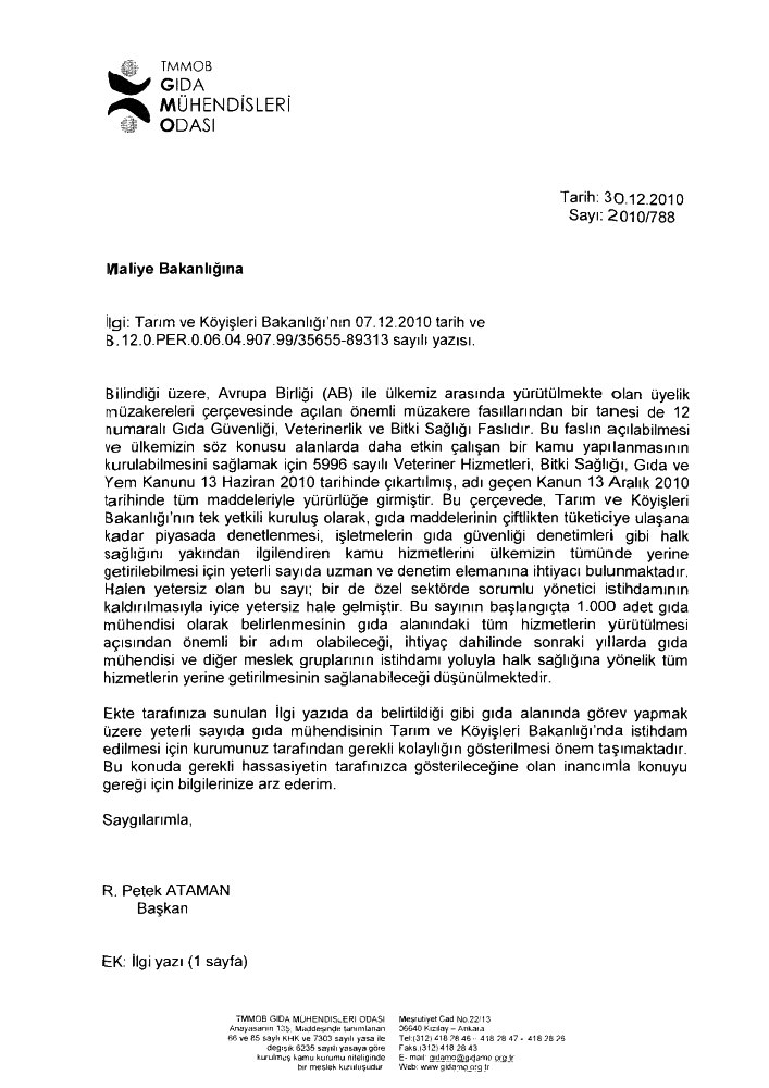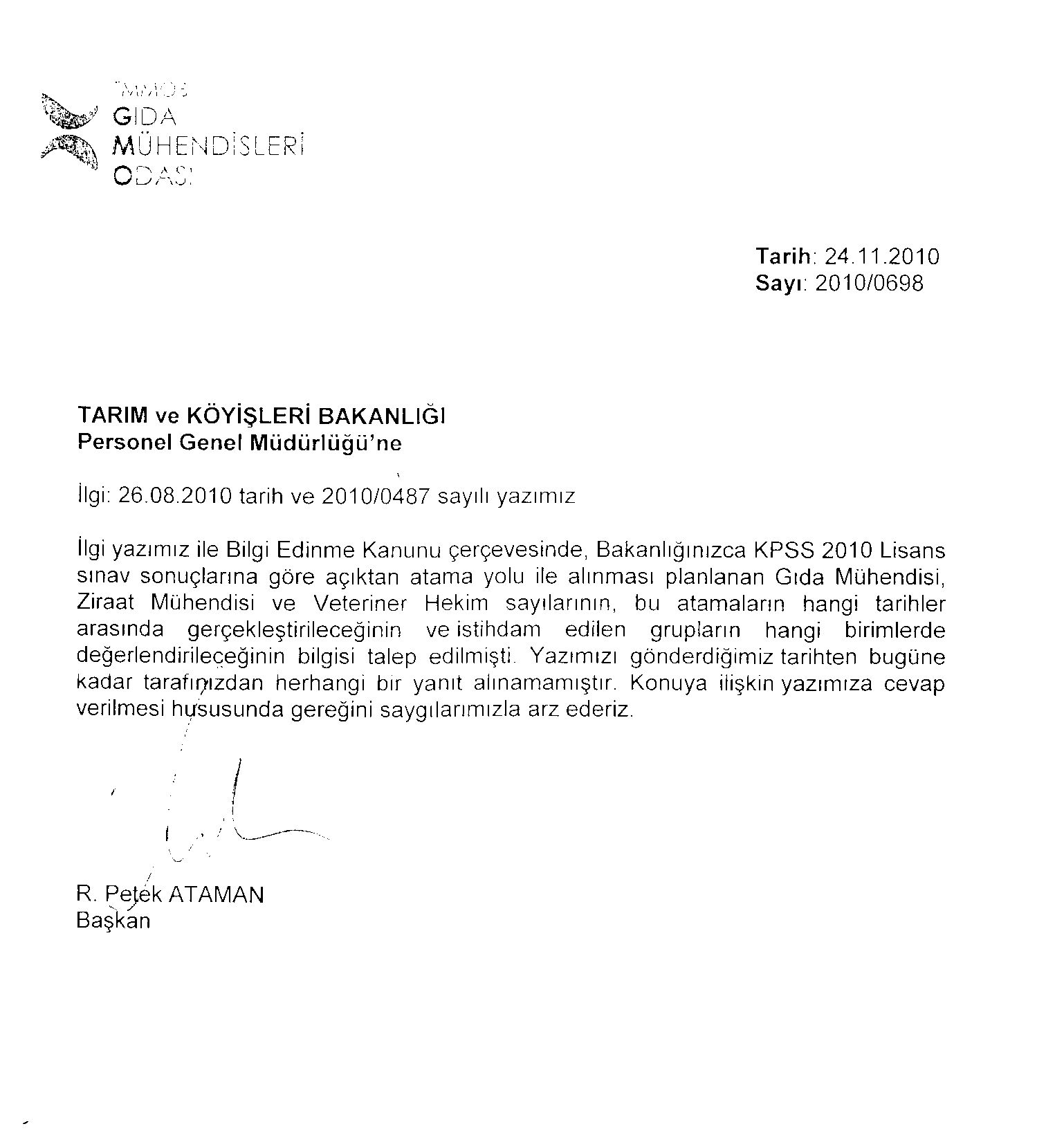 Tarım ve Köyişleri Bakanlığı Personel Daire Başkanlığı‘na, Başbakanlık Devlet Personel Başkanlığı‘na ve Maliye Bakanlığı‘na gönderilen "İstihdam" konulu resmi yazılarımız ekteki dosyalarda yer almaktadır.