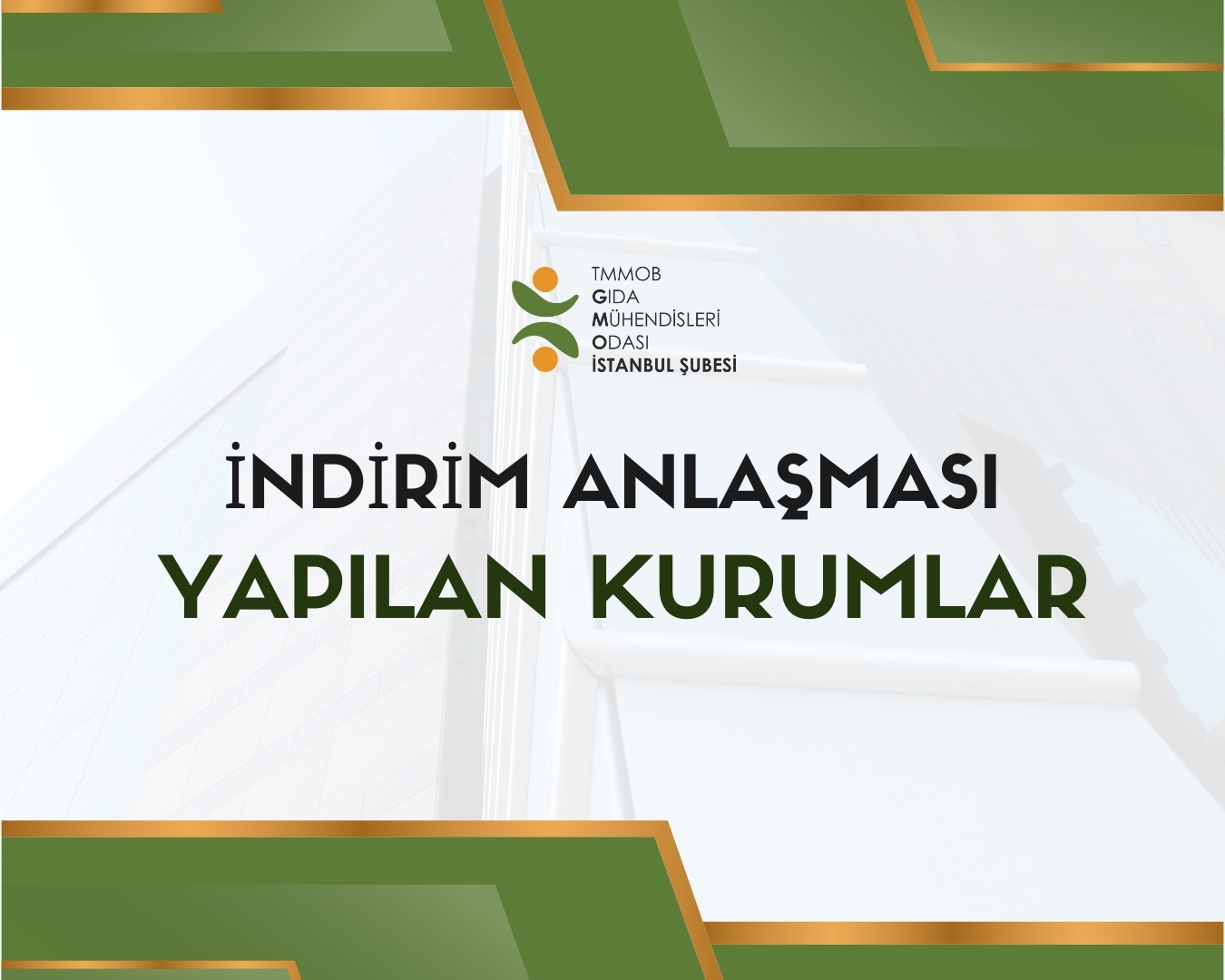 TMMOB GıdaMO İstanbul Şube Olarak, aşağıda yer alan kurumlarla tüm üyelerimizin faydalanabileceği kurumsal indirim anlaşmaları yapılmıştır.