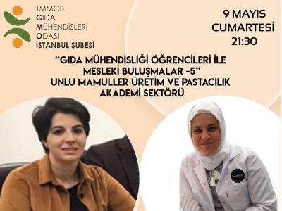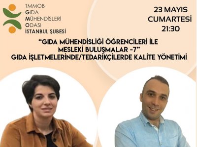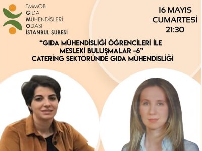TMMOB Gıda Mühendisleri Odası İstanbul Şubemizin, TeamLink ve Zoom uygulamaları üzerinden, 2020 Mayıs ayı içerisinde gerçekleştirdiği ‘`Gıda Mühendisliği Öğrencileri İle Mesleki Buluşmalar`` aşağıda sıralandığı gibidir. Mesleki buluşma etkinliklerimizde, sektörün farklı alanlarında tecrübeli olan meslektaşlarımız online platformda, öğrenci ve yeni mezun meslektaşlarımıza mesleki tecrübelerini aktarmaya devam ediyor. Bu buluşmalarda konuşmacı olarak yer alıp tecrübelerini paylaşan değerli konuklarımıza, gıda mühendisliği öğrencilerimize ve odamıza sunmuş olduğu katkılarından dolayı teşekkürlerimizi sunarız.
