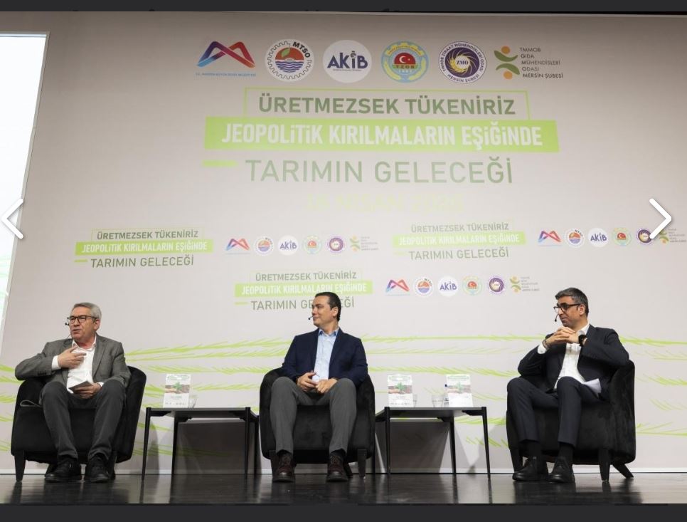 Mersin Şubemizin de düzenleyiciler arasında yer aldığı " Üretmezsek Tükeniriz, Jeopolitik Kırılmaların Eşiğinde Tarımın Geleceği" başlıklı panele Odamız adına Yönetim Kurulu 2. başkanı Şehmus Alparslan katıldı.