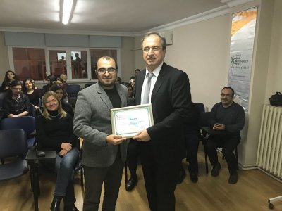 Söyleşi sonrası Sayın Murat ACIR‘a, İstanbul Şubesi Yönetim Kurulu Başkanımız Sayın İsa TAHTA tarafından teşekkür belgesi takdim edilmiştir.