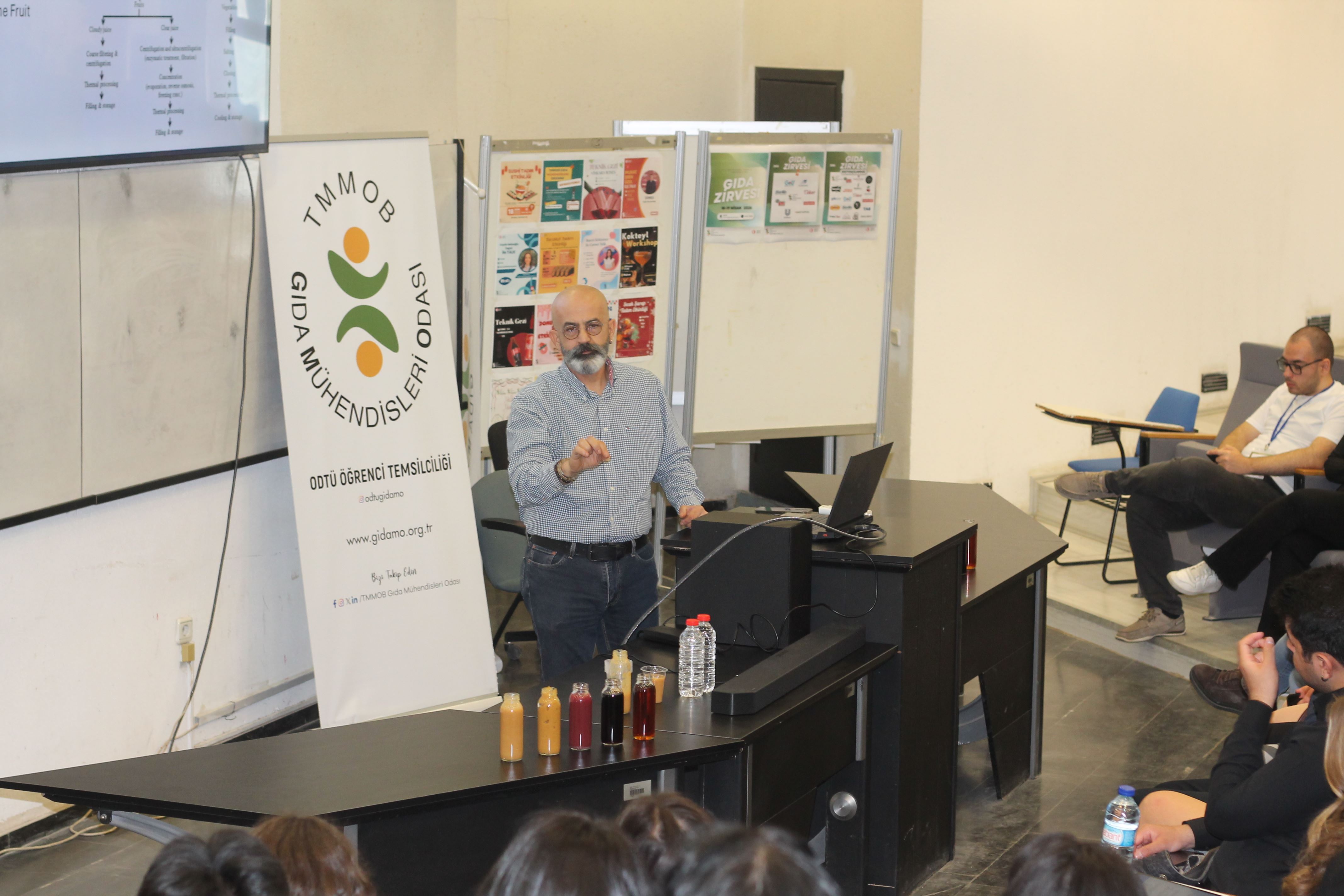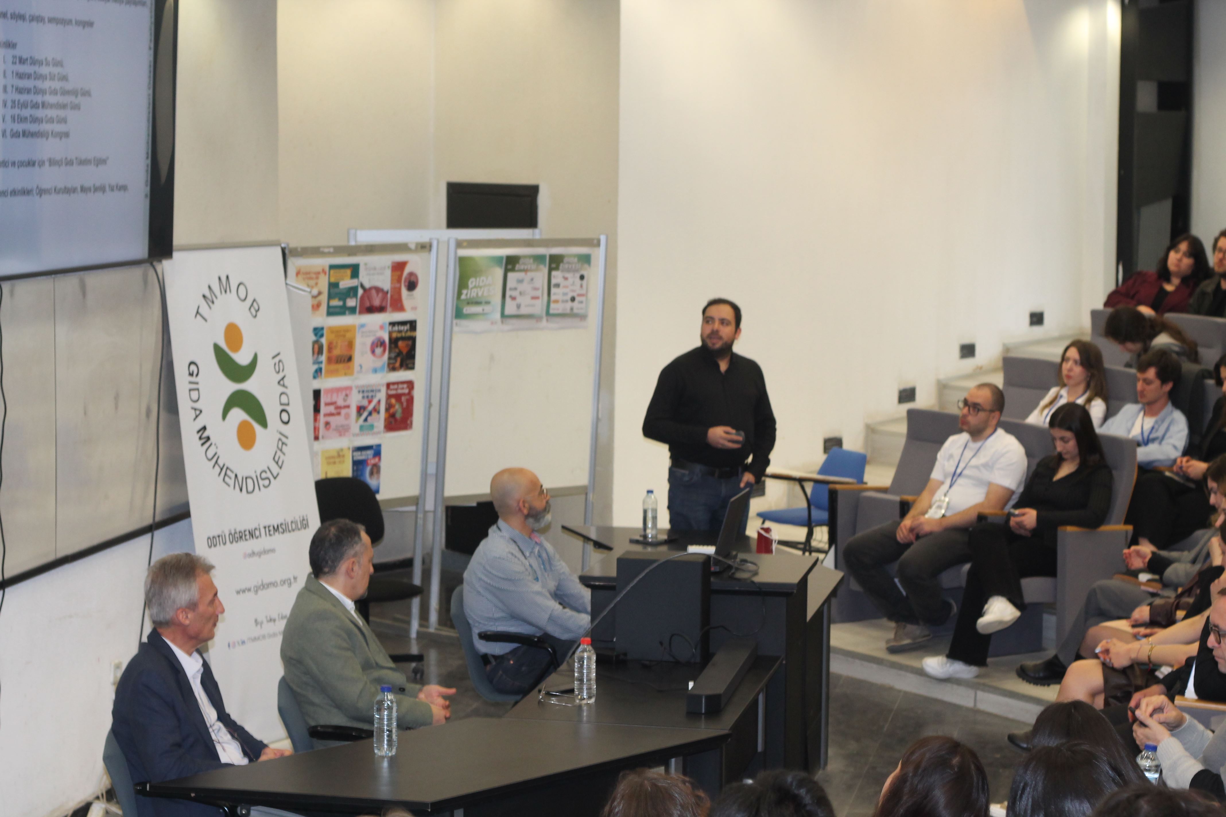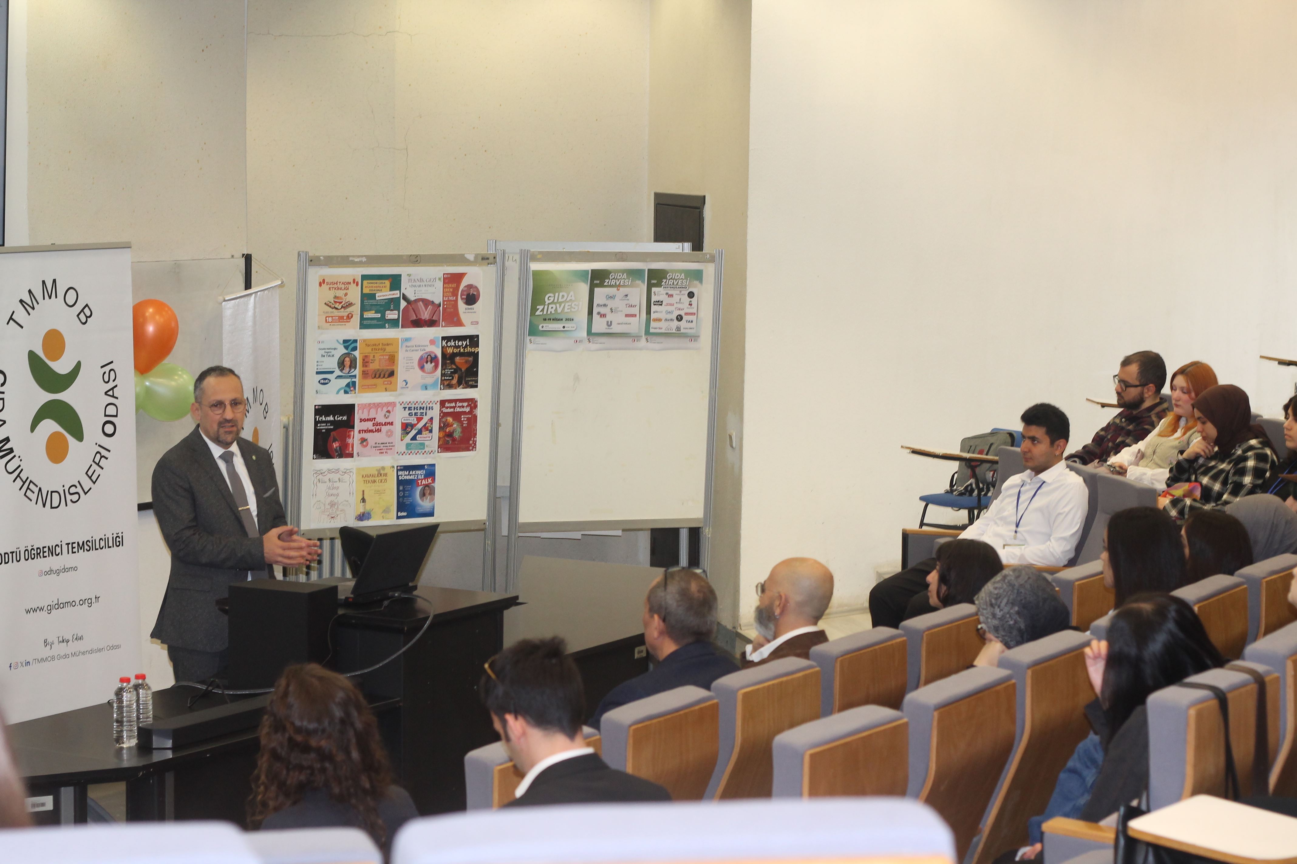 ODTÜ Öğrenci Temsilciliğimizin 18-19 Nisan 2026 tarihinde düzenlediği ODTÜ Gıda Zirvesi'ne Yönetim Kurulu Başkanımız İ. Uğur Toprak, Sayman Üyemiz Süleyman Degerli, Yönetim Kurulu Üyemiz Tufan Gündüzalp ve Yönetim Kurulu Yedek Üyemiz Cem Okur katılım sağlayarak Oda ve meslek tanıtımına yönelik sunum ve söyleşi gerçekleştirdiler.