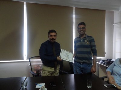 GıdaMO İstanbul Aydın Üniversitesi Öğrenci Temsilcimiz Sn. Mete YOLAŞ, şubemize ve öğrenci üyelerimize katkılarından dolayı Sn. Serdar MARAŞLI‘ya teşekkür belgesi takdim etmiştir.