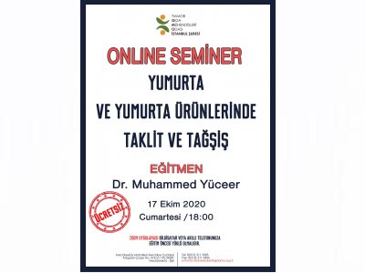 TMMOB Gıda Mühendisleri Odası İstanbul Şubemiz, 17 Ekim 2020 Cumartesi günü saat 18.00`da, Zoom uygulaması üzerinden online ve ücretsiz, "Yumurta ve Yumurta Ürünlerinden Taklit ve Tağşiş" semineri gerçekleştirdi.